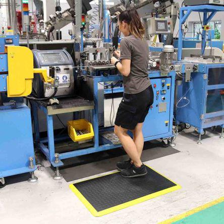 This is Individual Anti-Fatigue Mat x No 900mm x 18mm manufactured by COBA. The manufacturer part number is SED010702. Anti-Slip Options - yes. It has a decent black, yellow colour. It is resistant to chemical no . Additionally, it is oil resistant no . Its accurate length is 900mm. It is 18mm thick. The product has a/an individual format . Furthermore, the product is 1.2m wide. It features sed01 range. The surface is diamond pattern type.