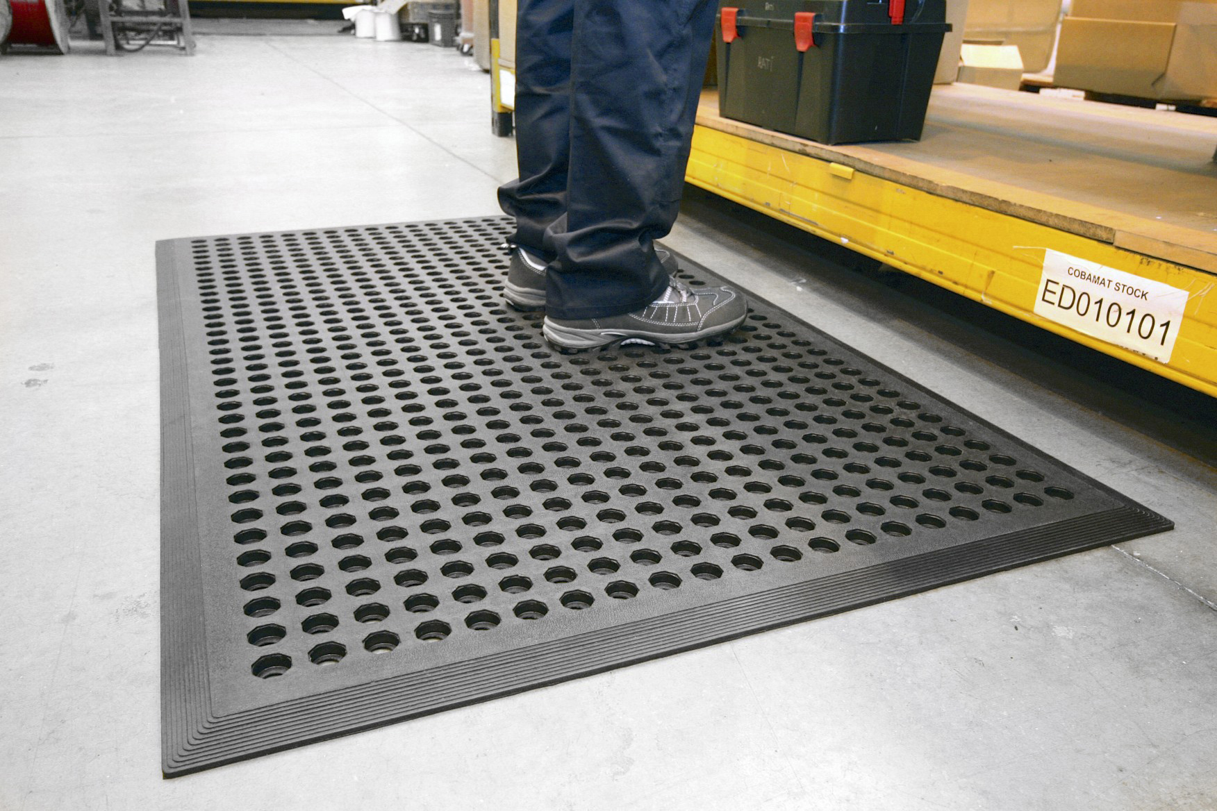 This is Worksafe Individual Rubber Anti-Fatigue Mat x 900mm 1.5m x 12mm manufactured by Coba Europe. The manufacturer part number is SW010001. Anti-Slip Options - yes. Its mat is made up of rubber material . It is recommended for dry, wet type environment . It has a decent black colour. It is resistant to chemical no . Additionally, it is oil resistant no . Its accurate length is 1.5m. It is 16mm thick. The product has a/an individual format . Furthermore, the product is 0.9m wide. It features worksafe range. The surface is textured type.