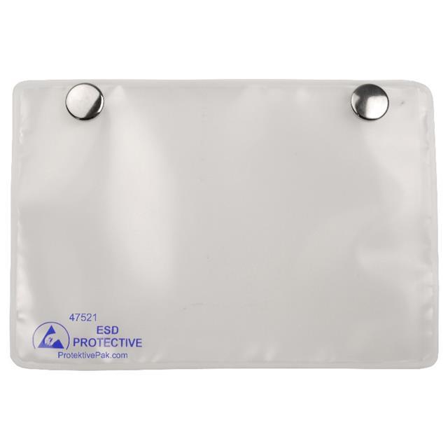 This is manufactured by Protektive Pak. The manufacturer part number is 47521. It is assigned with possible HTSUS value of 3923.21.0095. It is shipped in bulk package . Specifications include 5.50" l x 3.75" w, 7mm female snaps (2), dissipative, pvc, transparent. The product protektive pak®, is a highly preferred choice for users. The product is not applicable. It is a type of card holder accessory. In addition, it is reach unaffected. Its typical moisture sensitivity level is not applicable. The product is suitable for use with documents. It has a long 2 weeks standard lead time. The product is designated with the ear99 code number.