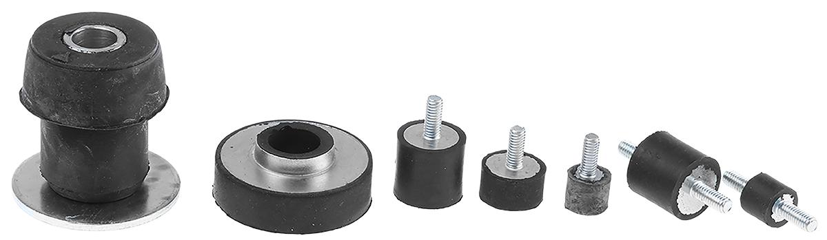This is 7 piece Anti Vibration Kit 5.8 → 132daN Bobbin Mount Universal Mount manufactured by FIBET. The manufacturer part number is KIT1. Its maximum load is approximately 132dan . This versatile kit contents include (3) bobbin mount 10 dia. x 8 mm, bobbin mount 15 dia. x 8 mm, bobbin mount 16 dia. x 15 mm, bobbin mount 36 dia. x 14 mm, universal mount 24 x 36 mm components. The product consists of 7 pieces.