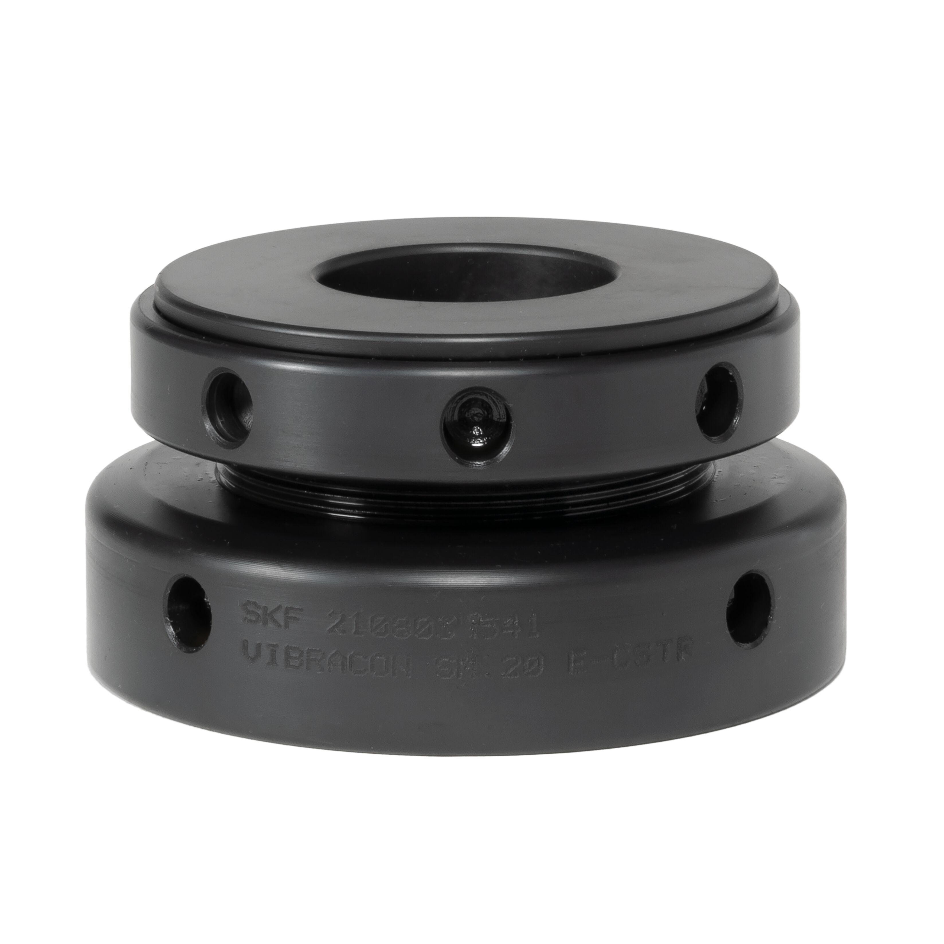 This is Adjustable chocks VIBRACON Circular M20 to M24 Anti Vibration Mount manufactured by SKF. The manufacturer part number is SM 20 E-CSTR. Its diameter is 100mm. It is assigned with a trade name of vibracon. The product has approximately 20000dan capacity of static load . Its bore is 54mm in length . The product is available in bolt configuration. In addition, it has an attractive circular shape foot . The product ris 2, is a highly preferred choice for users. Moreover, it has 54mm of overall height. The product is made from highly stable and reliable steel. It contains an anti vibration adjustable chocks type mount . It has a typical thread size of m20x24. It contains a standard 27mm bore diameter . Its outer diameter is 100mm.