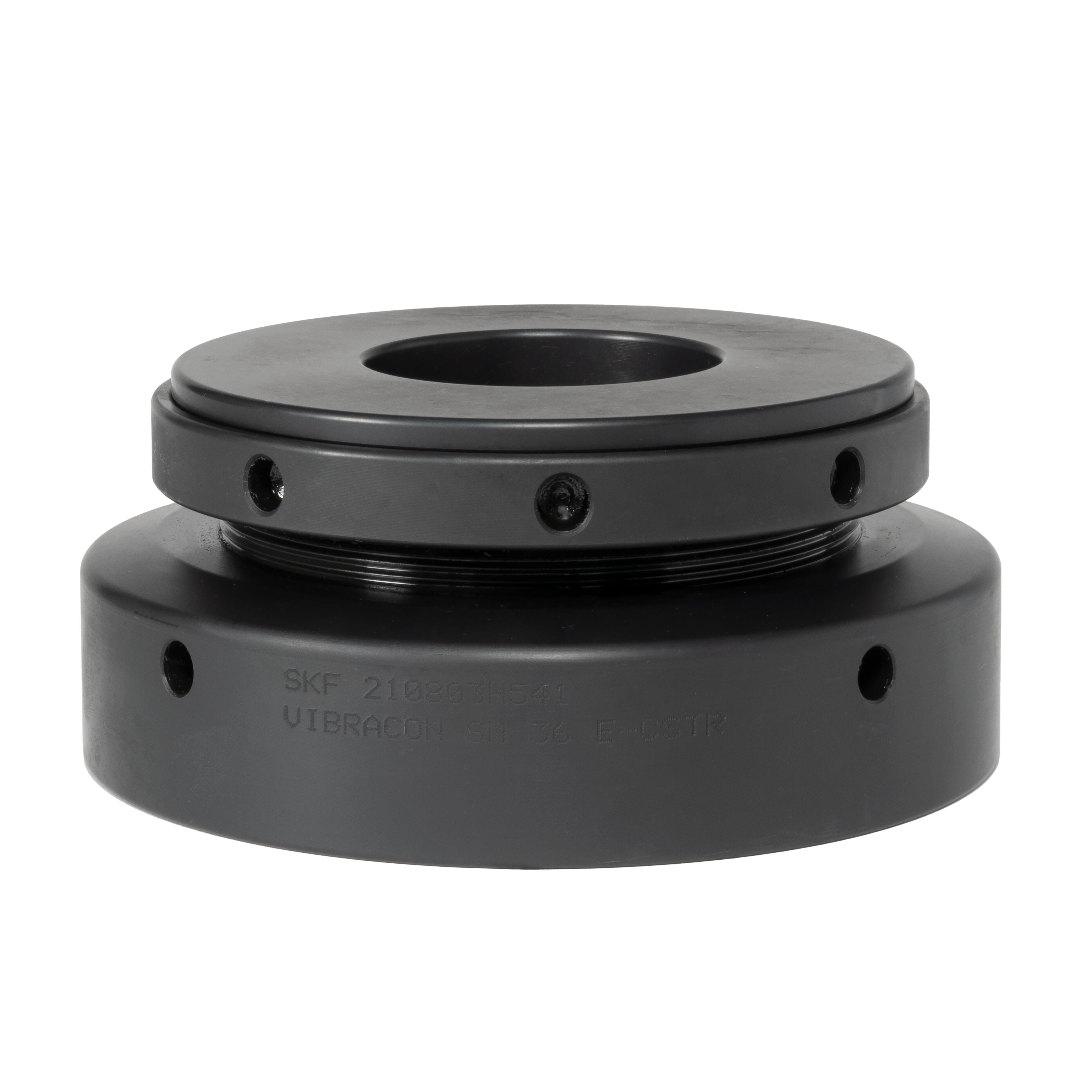 This is Adjustable chocks VIBRACON Circular M36 to M42 Anti Vibration Mount manufactured by SKF. The manufacturer part number is SM 36 E-CSTR. Its diameter is 160mm. The product has approximately 65000dan capacity of static load . Its bore is 70mm in length . The product is available in bolt configuration. It is assigned with a trade name of vibracon. Moreover, it has 70mm of overall height. The product is made from highly stable and reliable steel. It contains an anti vibration adjustable chocks type mount . It has a typical thread size of m36x42. In addition, it has an attractive circular shape foot . It contains a standard 45mm bore diameter . Its outer diameter is 160mm.