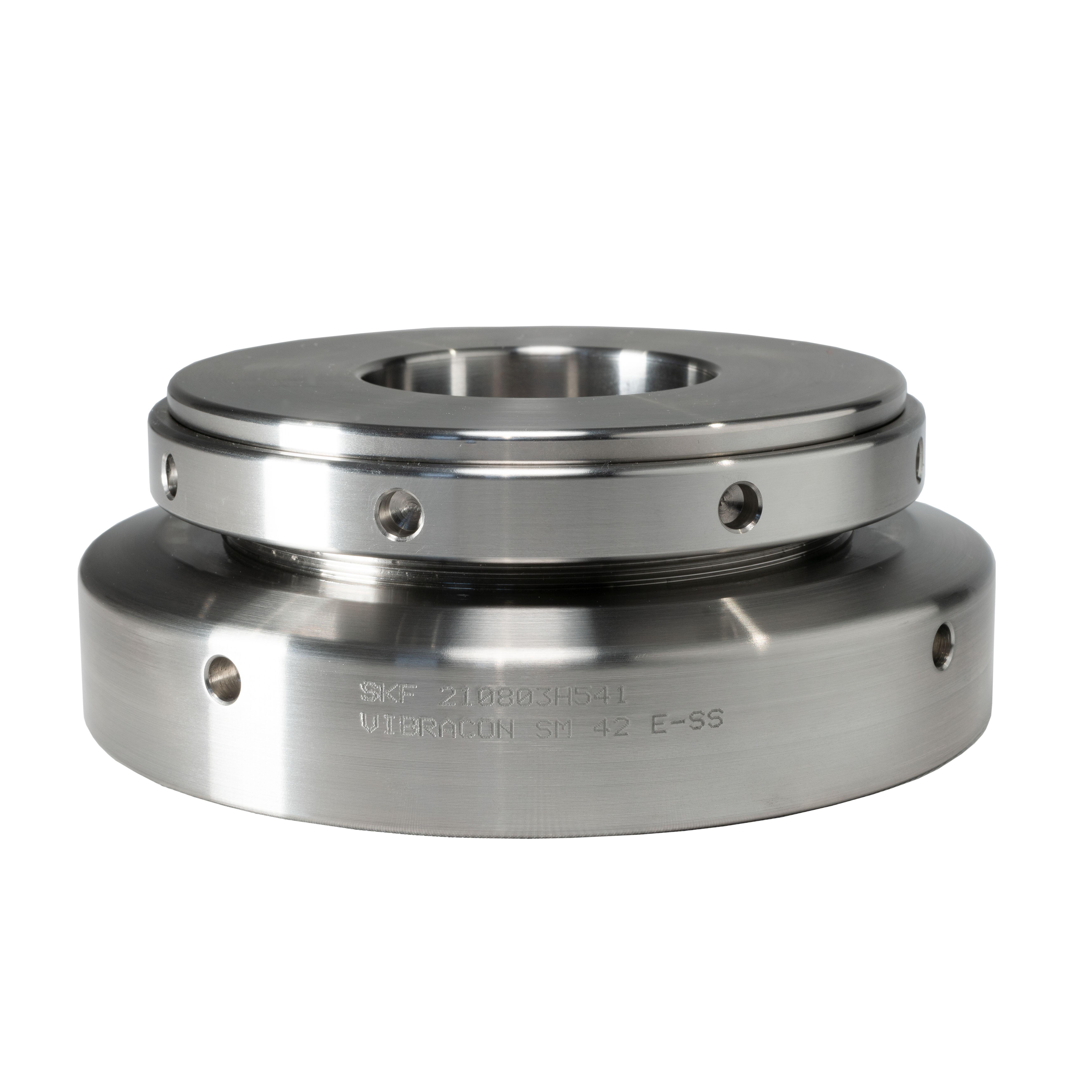 This is Adjustable chocks VIBRACON Circular M42 to M48 Anti Vibration Mount manufactured by SKF. The manufacturer part number is SM 42 E-SS. Its diameter is 190mm. The product has approximately 85000dan capacity of static load . Its bore is 75mm in length . The product is available in bolt configuration. It is assigned with a trade name of vibracon. Moreover, it has 75mm of overall height. The product is made from highly stable and reliable 316l stainless steel. It contains an anti vibration adjustable chocks type mount . It has a typical thread size of m42x48. In addition, it has an attractive circular shape foot . It contains a standard 52mm bore diameter . Its outer diameter is 190mm.