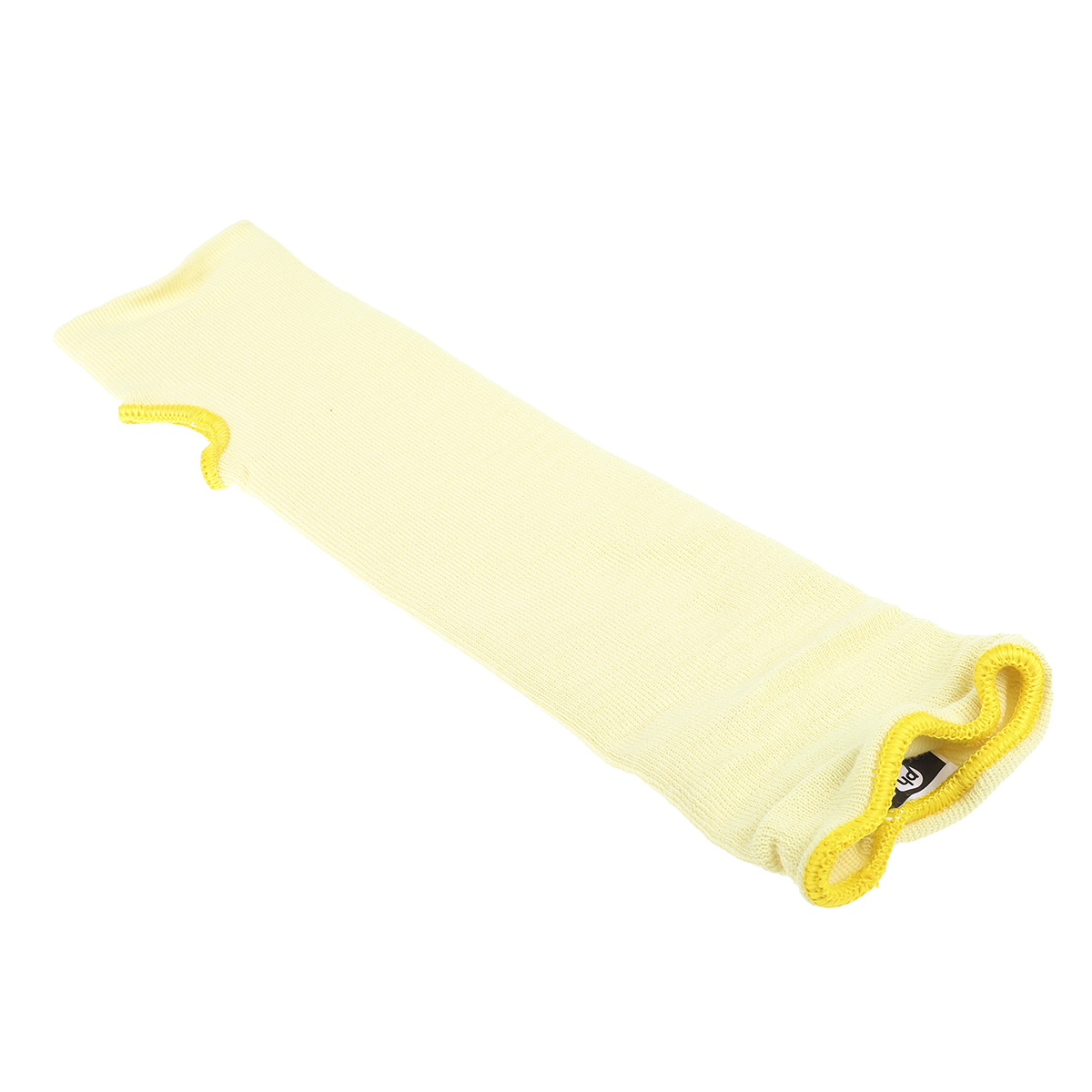 This is Touchstone Yellow Reusable Kevlar Arm Protector for Cut Resistant Use 14in Length One size manufactured by Polyco Healthline. The manufacturer part number is 7550. With knitted cuff type . The product's primary applications are cut resistant . It has a/an 3 EN 388 blade standard . It has 4 EN388 tear standard . It has an additional EN standards of en407 . It has a decent yellow colour. The product is made from highly stable and reliable kevlar. Its accurate length is 14in. It has a thumb slot yes . It has x EN388 Puncture standard . It features touchstone range. In addition, the product is reusable . Its material offers a/an abrasion resistance, cut resistance, tear resistant properties . It has 1 EN288 abrasion standard . The product is available in one size size.