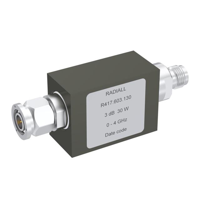 This is manufactured by Radiall USA, Inc.. The manufacturer part number is R417610130. The frequency range includes 0 hz ~ 4 ghz. It is assigned with possible HTSUS value of 8533.29.0000. The given attenuation value involves 10db. Its typical moisture sensitivity level is not applicable. In addition, bulk is the available packaging type of the product. The product features power and watts of 30w. Moreover, the product comes in tnc in-line module. It has an impedance value of 50 ohms. It has a long 11 weeks standard lead time. The radiall usa, inc.'s product offers user-desired applications. The product is designated with the ear99 code number.