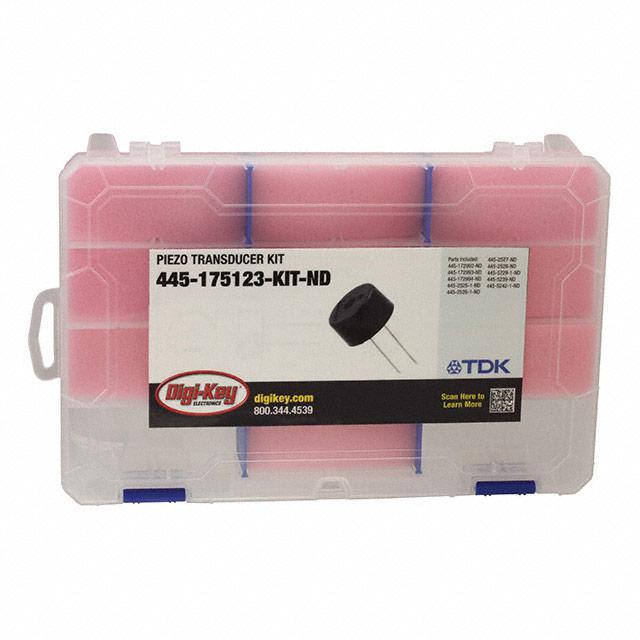 This is manufactured by TDK Corporation. The manufacturer part number is TRANSDUCER-KIT-ND. The buzzers is designed to provide robust applications in a variety of specific settings. The product is available in through hole configuration. It is assigned with possible HTSUS value of 8531.80.9041. It is shipped in case package . Specifications include piezo. The product is rohs3 compliant. In addition, it is see individual parts. Its typical moisture sensitivity level is 1 (unlimited). Available in 20 pieces (10 values - 2 each) quantity. The product is designated with the ear99 code number.