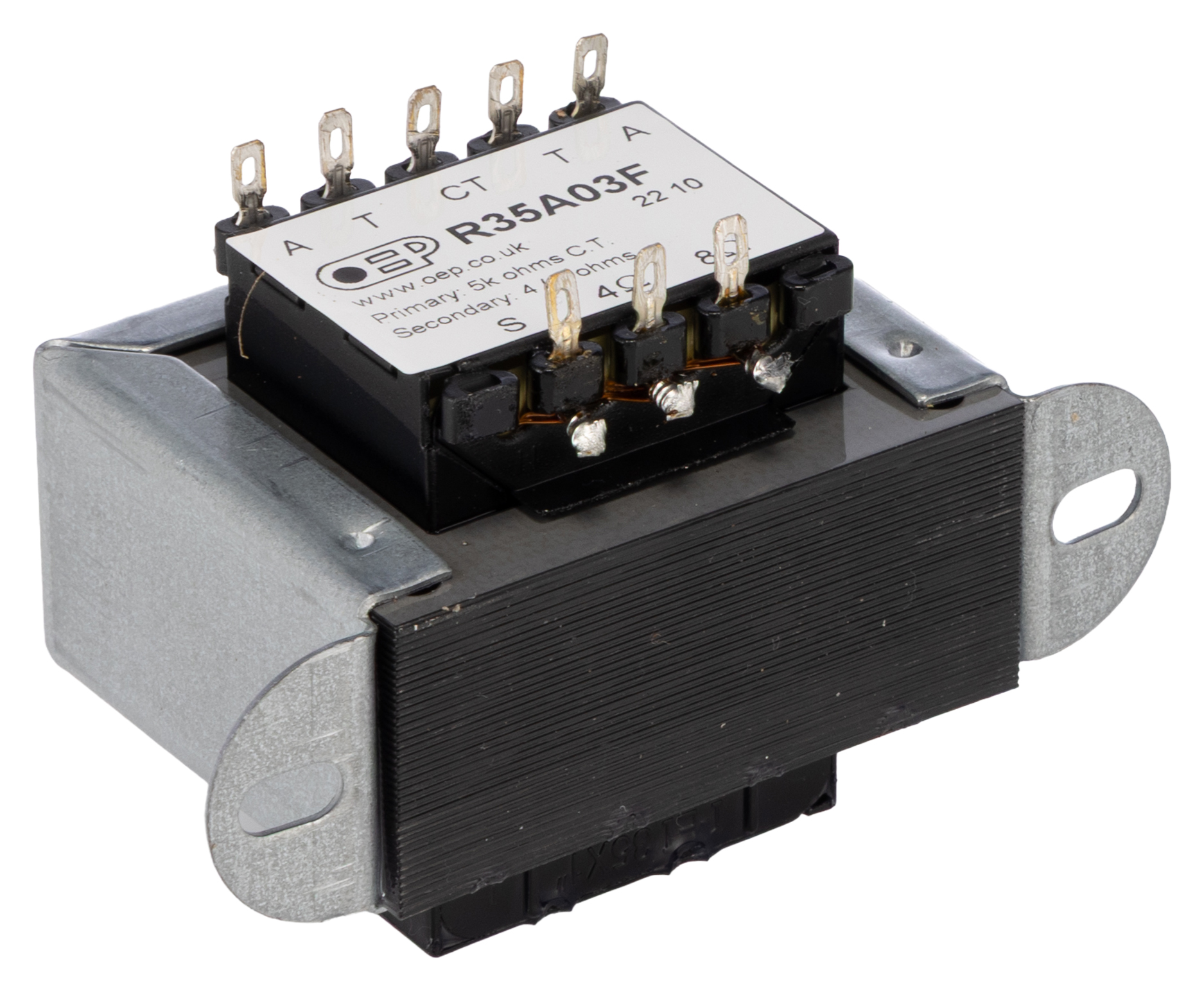 This is 5kΩ:4Ω/8Ω 12W Push-Pull Transformer for Valve Amplifier manufactured by OEP. The manufacturer part number is R35A03F. Additionally, it has 320ω primary DC resistance . It has 2000v isolation voltage. The given dimensions of the product include 87.3 x 52 x 49.5mm. The typical product's weight is 465g. The product has +60°c maximum temperature. While its minimum temperature is -20°c. It has about 5kω primary impedance . Its accurate length is 87.3mm. It carries 20khz of maximum operating frequency. Furthermore, the product is 52mm wide. The product comes in 49.5mm depth. The product has been well-designed with open frame construction. It has a minimum 50hz operating frequency . The product is designed with a solder termination. The product is available in panel mount configuration. Feature 12w of power rating. Its secondary impedance is about 4 ω, 8 ω . Robust product with a laminated core. It has about 750mω secondary DC resistance .
