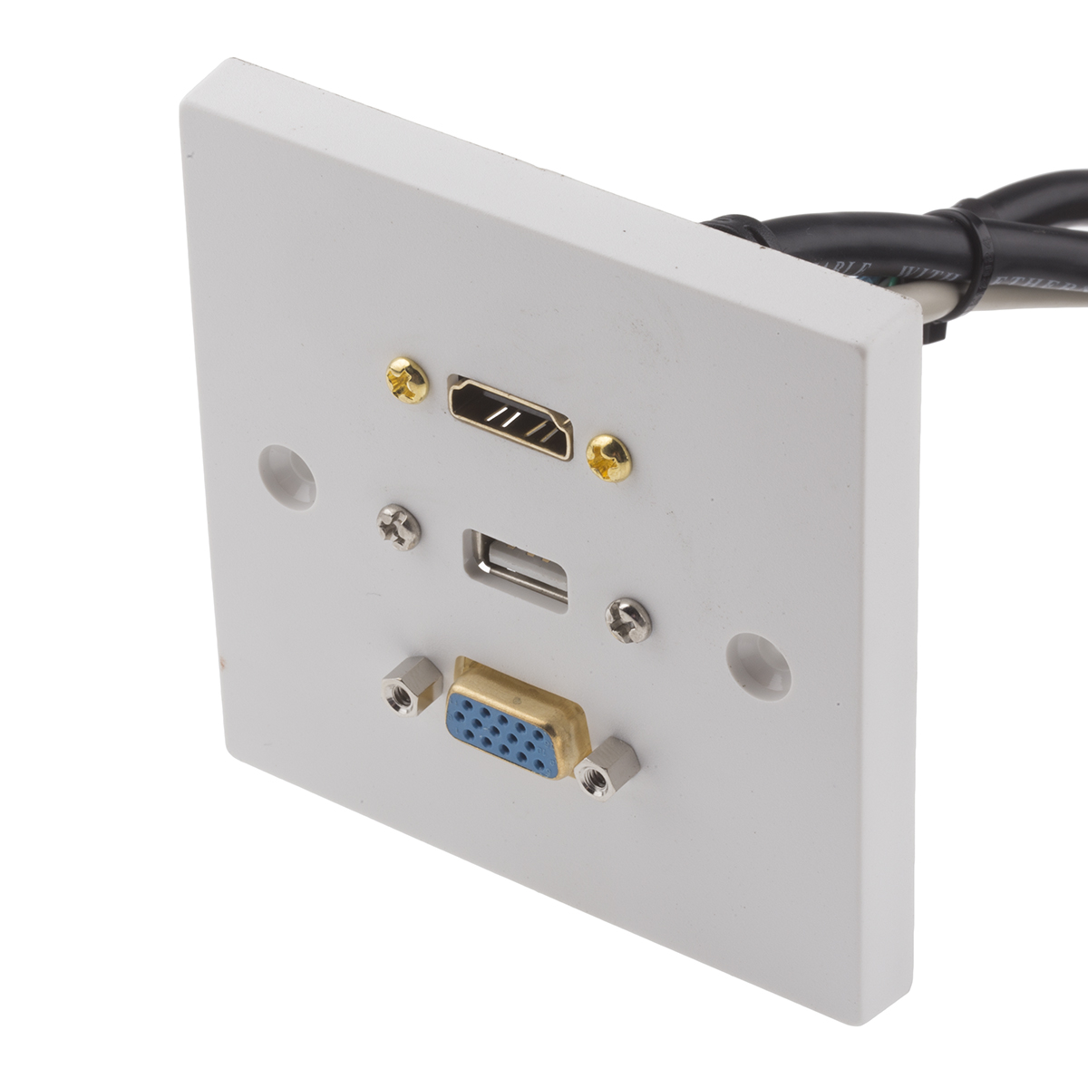 This is Single Gang 3 Way Female HDMI SVGA USB A Faceplate manufactured by RS Pro. The manufacturer part number is 919-4038. In addition, female is the available "Gender" of the product. It has 3 connectors . It includes hdmi, svga, usb a type connectors . The product is available in single gang size.