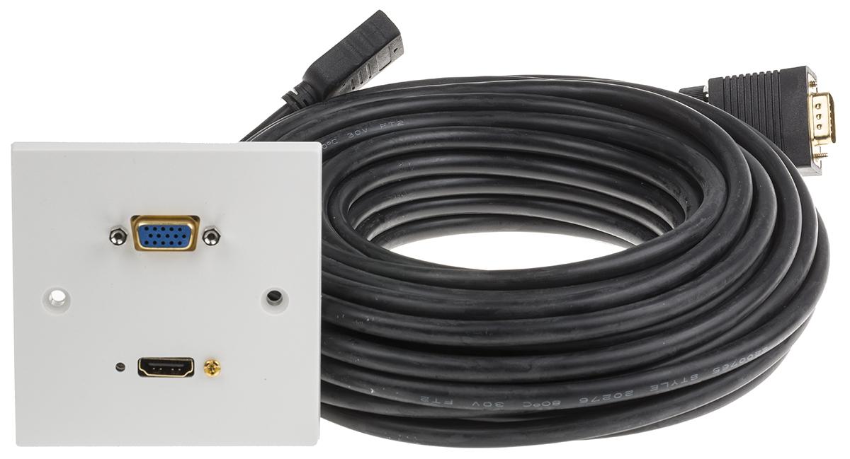 This is Single Gang 2 Way Female HDMI SVGA Faceplate manufactured by RS Pro. The manufacturer part number is 919-4022. It includes hdmi, svga type connectors . In addition, female is the available "Gender" of the product. It has 2 connectors . Its accurate length is 15m. The product is available in single gang size.