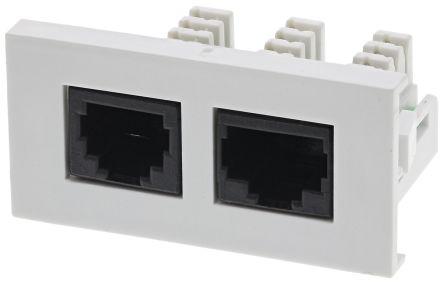 This is Double Gang 2 Way Female RJ11 RJ45 Faceplate The manufacturer part number is CLB50-84K-C5E. The given dimensions of the product include 35 x 25 x 50mm. It includes rj11, rj45 type connectors . In addition, female is the available "Gender" of the product. It has 2 connectors . In addition, the height is 50mm. Furthermore, the product is 25mm wide. Its accurate length is 35mm. The product is available in double gang size.