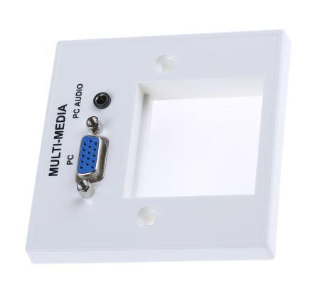 This is Single Gang 1 Way VGA Faceplate manufactured by CIE. The manufacturer part number is CLB-2550-UD-VGA-AUDIO. It includes vga type connectors . It has 1 connectors . In addition, the height is 45mm. Furthermore, the product is 45mm wide. The product is available in single gang size.