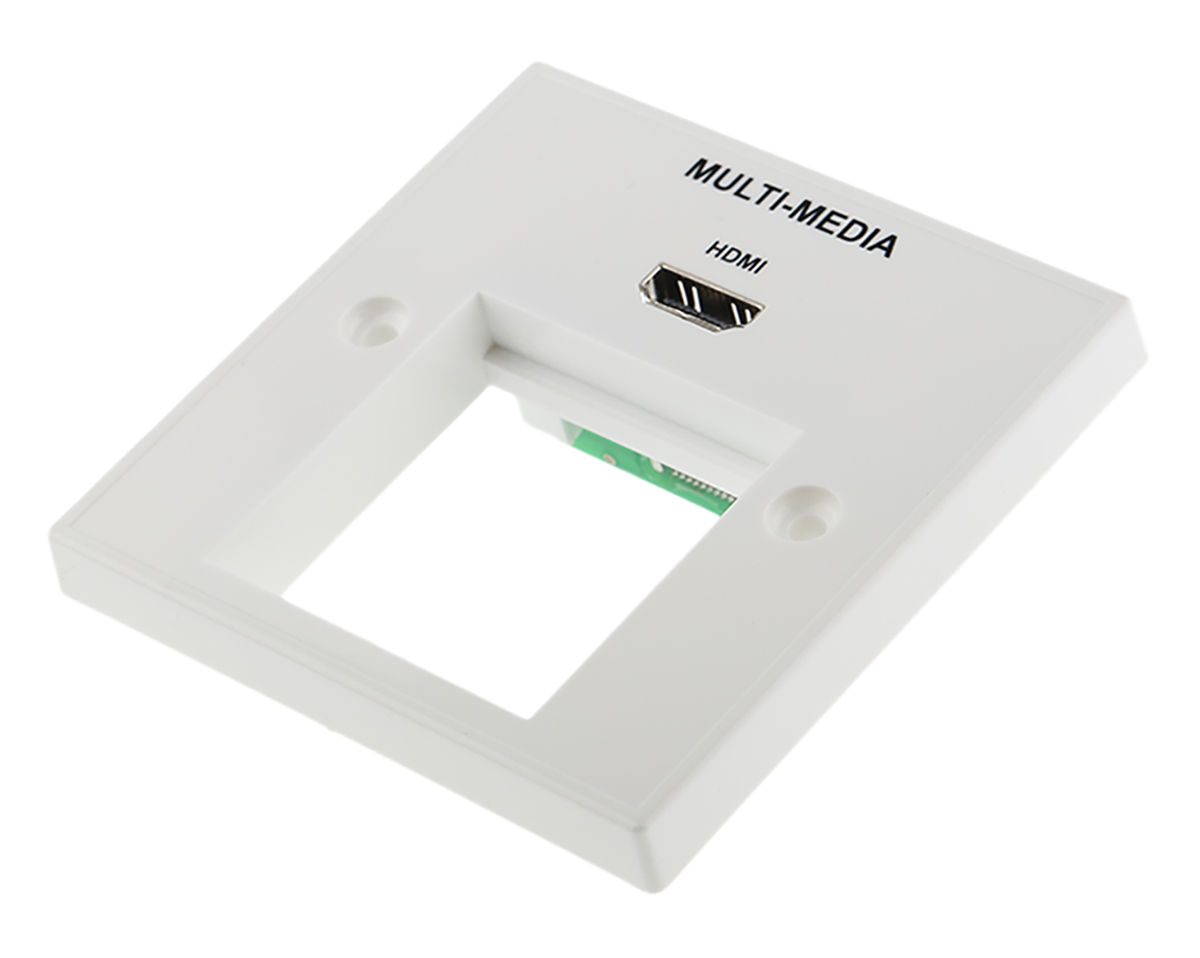 This is Single Gang 1 Way HDMI Faceplate manufactured by RS PRO. The manufacturer part number is 768-4337. The given dimensions of the product include 45 x 45mm. It includes hdmi type connectors . It has 1 connectors . In addition, the height is 45mm. Furthermore, the product is 45mm wide. The product is available in single gang size.