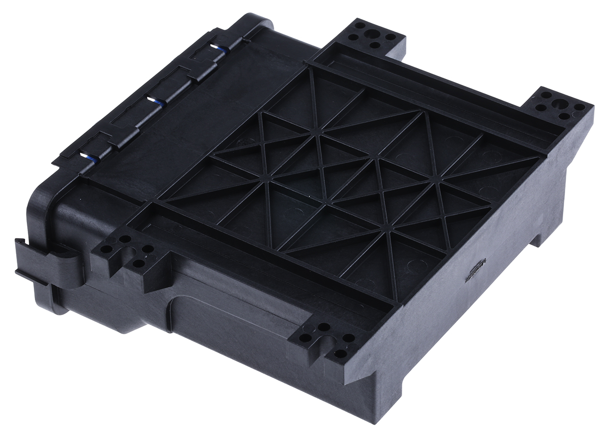 The 5810130043 ModICE enclosure from Cinch Connectivity delivers rugged and reliable protection for ModICE automotive and industrial connector assemblies. Crafted from black glass‑filled polymer, this wall‑mount enclosure withstands harsh environments and is rated to IP67 and IP69K, ensuring superior resistance to dust, high-pressure washdowns, and fluid ingress. Additionally, compact and versatile, the enclosure measures approximately 153 × 135 × 52 mm (6.03 × 5.3 × 2.06 in), accommodating board sizes around 4.5 × 4.6 in.