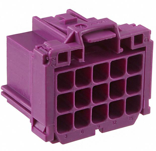 This is AMP MCP 2.8 Series 15 Way Socket Housing manufactured by TE Connectivity. The manufacturer part number is 5-968973-1. The high-quality tin is used as contact plating material. In addition, female is the available "Gender" of the product. It has a decent purple colour. In addition, the height is 28mm. The product also features robust nylon housing material. Furthermore, the product is 31mm wide. The product comes in 23.5mm depth. It comes in 3 of rows. The product amp mcp 2.8, is a highly preferred choice for users. The product contains 15 contacts. It comes in automotive connector housing configuration. The product is made from sturdy copper alloy materials.
