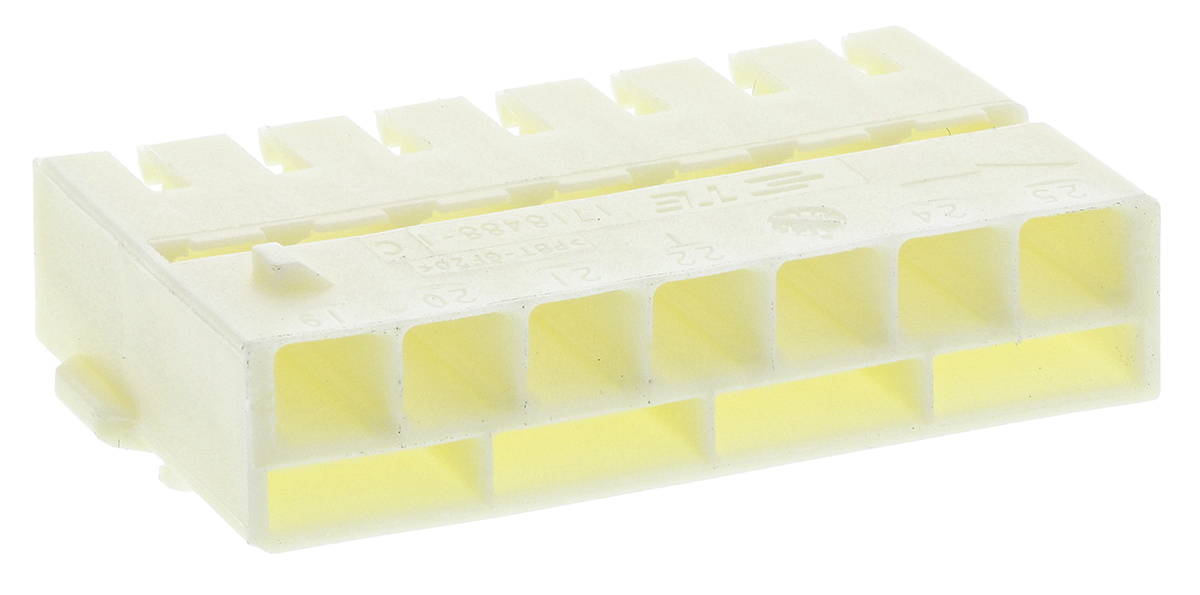 This is AMP MCP 2.8 Series 7 Way Cable Mount Socket Insert manufactured by TE Connectivity. The manufacturer part number is 1718488-1. The product is available in cable mount configuration. In addition, female is the available "Gender" of the product. It has a decent natural colour. In addition, the height is 8.4mm. The product also features robust pbt housing material. Furthermore, the product is 37.2mm wide. The product comes in 23.5mm depth. It comes in 1 of rows. The product amp mcp 2.8, is a highly preferred choice for users. The product contains 7 contacts. It comes in insert configuration.