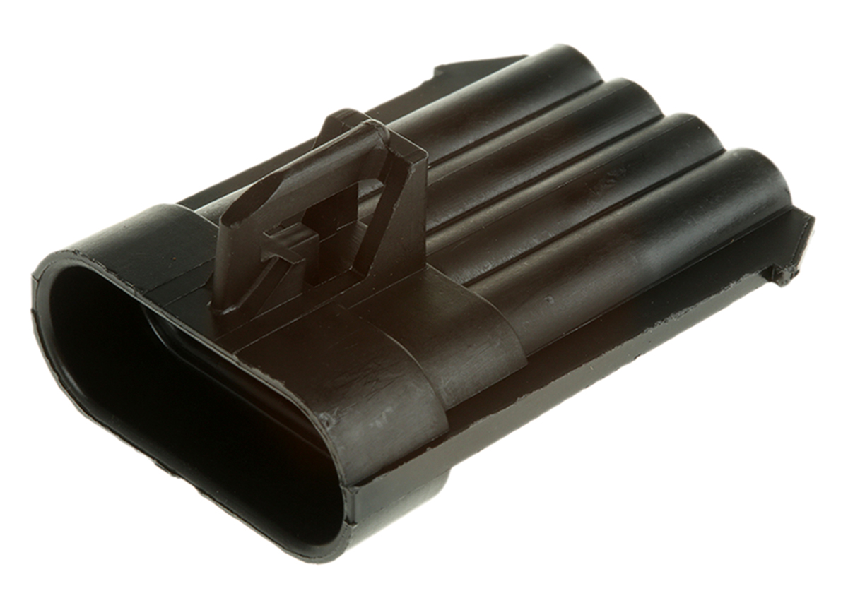 This is Metri-Pack 150 Series 1 Row 4 Way Cable Mount Plug Connector with Crimp Termination Method manufactured by Delphi. The manufacturer part number is 12162102. The product has a current rating of 14a. The product is available in cable mount configuration. In addition, male is the available "Gender" of the product. It has a decent black colour. It allows crimp termination method. In addition, the height is 22.2mm. The product also features robust pbt housing material. Furthermore, the product is 34.6mm wide. The product comes in 45.5mm depth. It comes in 1 of rows. Whereas, the minimum operating temperature of the product is -40°c. The product metri-pack 150, is a highly preferred choice for users. The product contains 4 contacts. It comes in automotive connector configuration. It has a maximum operating temperature of +125°c.