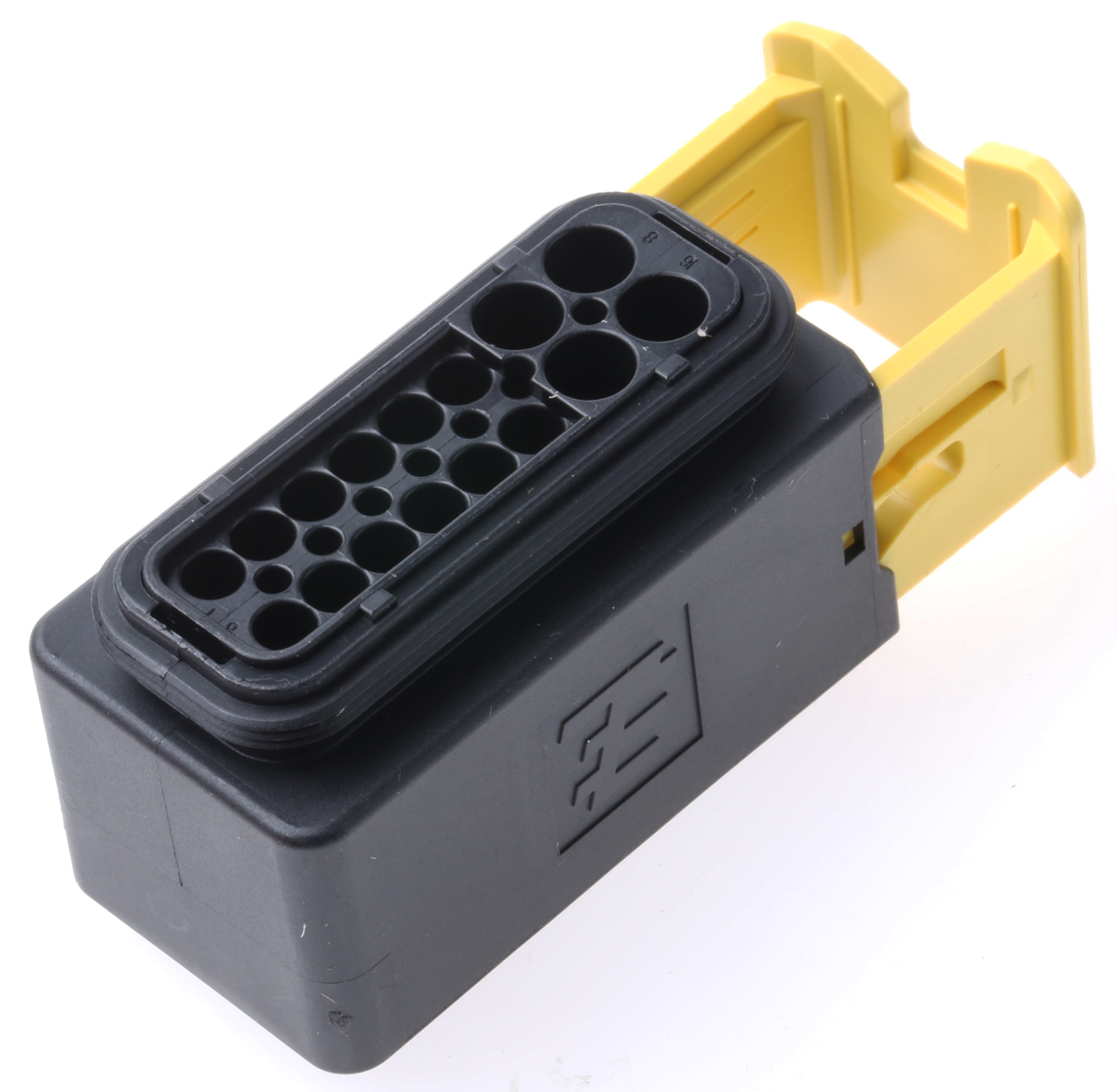This is AMP MCP 1.5/2.8 Series 16 Way Cable Mount Socket Connector with Crimp Termination Method manufactured by TE Connectivity. The manufacturer part number is 1-1564337-1. The product is available in cable mount configuration. In addition, female is the available "Gender" of the product. It has a decent black colour. It allows crimp termination method. In addition, the height is 31.25mm. The product also features robust glass fibre reinforced pbt housing material. Furthermore, the product is 25.7mm wide. The product comes in 67.2mm depth. It comes in 2 of rows. Whereas, the minimum operating temperature of the product is -40°c. The product hdscs, is a highly preferred choice for users. The product contains 16 contacts. It comes in automotive connector configuration. It has a maximum operating temperature of +140°c.