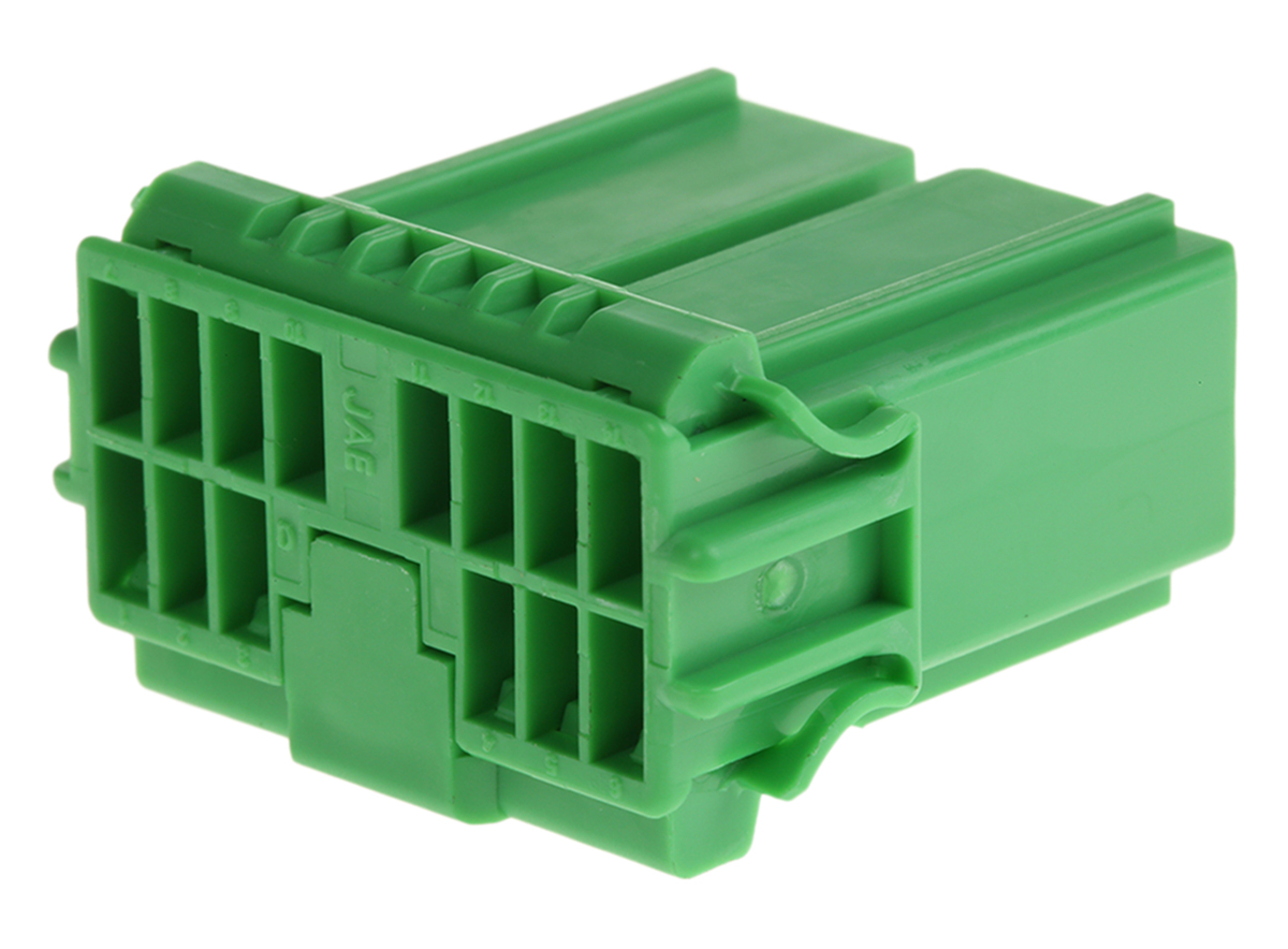 This is 14 Way Cable Mount Socket Housing manufactured by JAE. The manufacturer part number is IL-AG5-14S-D3C1-A. The product has a current rating of 3a. The product is available in cable mount configuration. In addition, female is the available "Gender" of the product. It has a decent green colour. In addition, the height is 16.6mm. The product also features robust pbt housing material. Furthermore, the product is 26.7mm wide. The product comes in 24.6mm depth. It comes in 2 of rows. Whereas, the minimum operating temperature of the product is -40°c. The product il-ag5, is a highly preferred choice for users. The product contains 14 contacts. It comes in automotive connector housing configuration. It has a maximum operating temperature of +85°c.