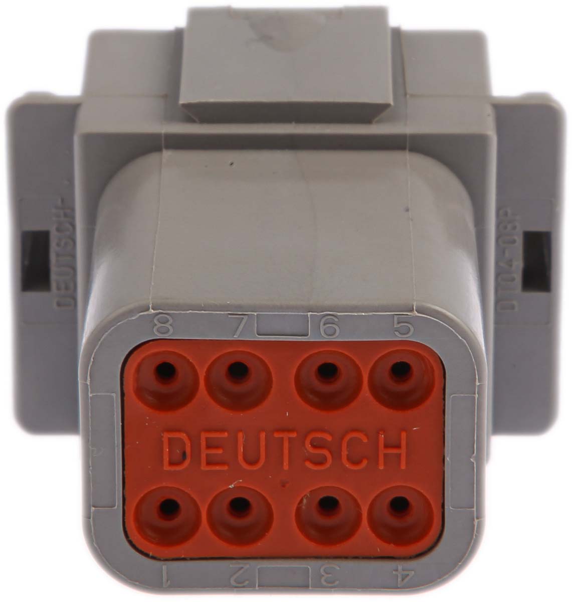 DT Receptacles From Deutsch, this DT Series receptacle is designed for cable to cable connections, and when mated is sealed to a high degree of environmental protection. Safe, versatile and reliable, DT receptacle connectors are ideal for automotive applications. Features and Benefits IP68 Wire-to-Wire Connection System Operating Temperature Range of -55 to +125 Available in this Range Stock No. 425-765 is a 2 Way Receptacle Connector Housing for Male Terminals Stock No. 425-531 is a 3 Way Receptacle Connector Housing for Male Terminals Stock No. 425-632 is a 4 Way Receptacle Connector Housing for Male Terminals Stock No. 425-705 is a 6 Way Receptacle Connector Housing for Male Terminals Stock No. 425-709 is an 8 Way Receptacle Connector Housing for Male Terminals Stock No. 425-418 is a 12 Way Receptacle Connector Housing for Male Terminals Stock No. 915-6534 is a 2 Way Receptacle Connector Housing for Male Terminals Stock No. 915-6537 is a 3 Way Receptacle Connector Housing for Male Terminals Stock No. 915-6531 is a 4 Way Receptacle Connector Housing for Male Terminals Stock No. 915-6540 is a 6 Way Receptacle Connector Housing for Male Terminals Stock No. 915-6543 is an 8 Way Receptacle Connector Housing for Male Terminals Approvals IP67 V4DT Range A range of 2 to 12way, 13A rated sealed connectors.,Available in standard inline, flanged receptacle and boot adaptor options (enables fitting of standard heatshrink tubing).,Each connector requires a secondary wedgelock for maximum contact retention.,Uses Deutsch Size 16 solid contacts (stock no. 425-761),Receptacles use male Pins, Plugs use sockets Sealed to IP67 Durable – 100 mating cycles minimum Vibration poof – 20g's at 10 - 2000Hz Corrosion ...
