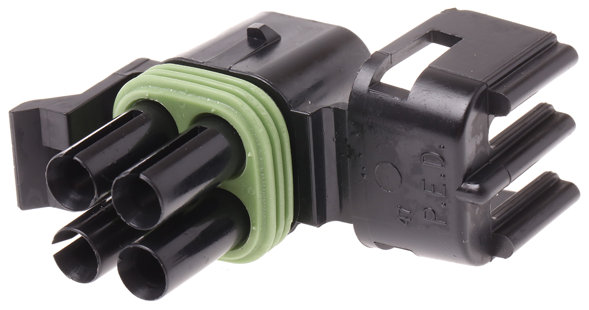 This is Weather-Pack Series 4 Way Cable Mount Socket Connector with Crimp Termination Method manufactured by Delphi. The manufacturer part number is 12015798. The product has a current rating of 20a. The product is available in cable mount configuration. In addition, female is the available "Gender" of the product. It has a decent black colour. It allows crimp termination method. In addition, the height is 28.5mm. The product also features robust pa housing material. Furthermore, the product is 21.7mm wide. The product comes in 40.3mm depth. It comes in 2 of rows. Whereas, the minimum operating temperature of the product is -40°c. The product weather-pack, is a highly preferred choice for users. The product contains 4 contacts. It comes in automotive connector configuration. It has a maximum operating temperature of +125°c.