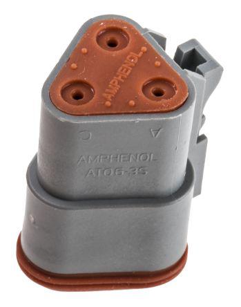 This is AT Series 3 Way Cable Mount Plug Power Connector manufactured by Amphenol. The manufacturer part number is AT06-3S. The product is available in cable mount configuration. In addition, male is the available "Gender" of the product. In addition, the height is 22.67mm. Furthermore, the product is 18.3mm wide. The product comes in 28.55mm depth. The product at, is a highly preferred choice for users. The product contains 3 contacts. It comes in power connector configuration.