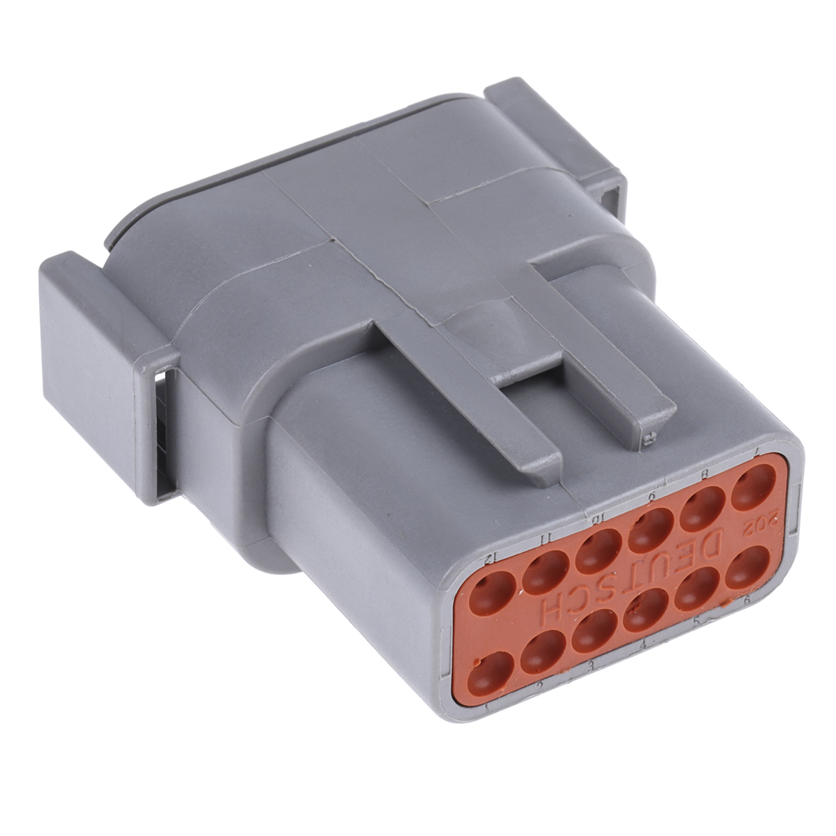 This is DTM Series 2 Row 12 Way Socket Connector with Crimp Termination Method manufactured by Deutsch. The manufacturer part number is DTM0412PA. The product has a current rating of 7.5a. Whereas, the minimum operating temperature of the product is -55°c. In addition, female is the available "Gender" of the product. It has a decent grey colour. It allows crimp termination method. In addition, the height is 20.22mm. The product also features robust thermoplastic housing material. Furthermore, the product is 40.01mm wide. The product comes in 43.69mm depth. It comes in 2 of rows. The high-quality nickel is used as contact plating material. The product dtm, is a highly preferred choice for users. The product contains 12 contacts. It comes in automotive connector configuration. It has a maximum operating temperature of +125°c. The product is made from sturdy copper alloy materials.