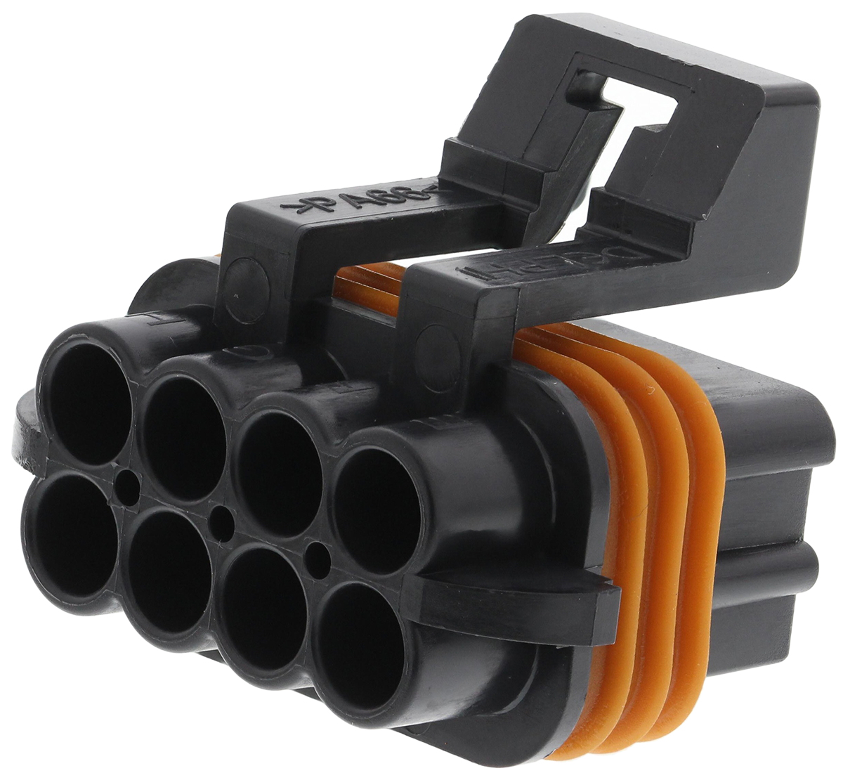 This is Metri-Pack 150 Series 2 Row 8 Way Cable Mount Socket Connector with Crimp Termination Method manufactured by Delphi. The manufacturer part number is 12047937. The product has a current rating of 14a. The product is available in cable mount configuration. In addition, female is the available "Gender" of the product. It has a decent black colour. It allows crimp termination method. In addition, the height is 28.8mm. The product also features robust pa housing material. Furthermore, the product is 35.2mm wide. The product comes in 27.4mm depth. It comes in 2 of rows. Whereas, the minimum operating temperature of the product is -40°c. The product metri-pack 150, is a highly preferred choice for users. The product contains 8 contacts. It comes in automotive connector configuration. It has a maximum operating temperature of +125°c.