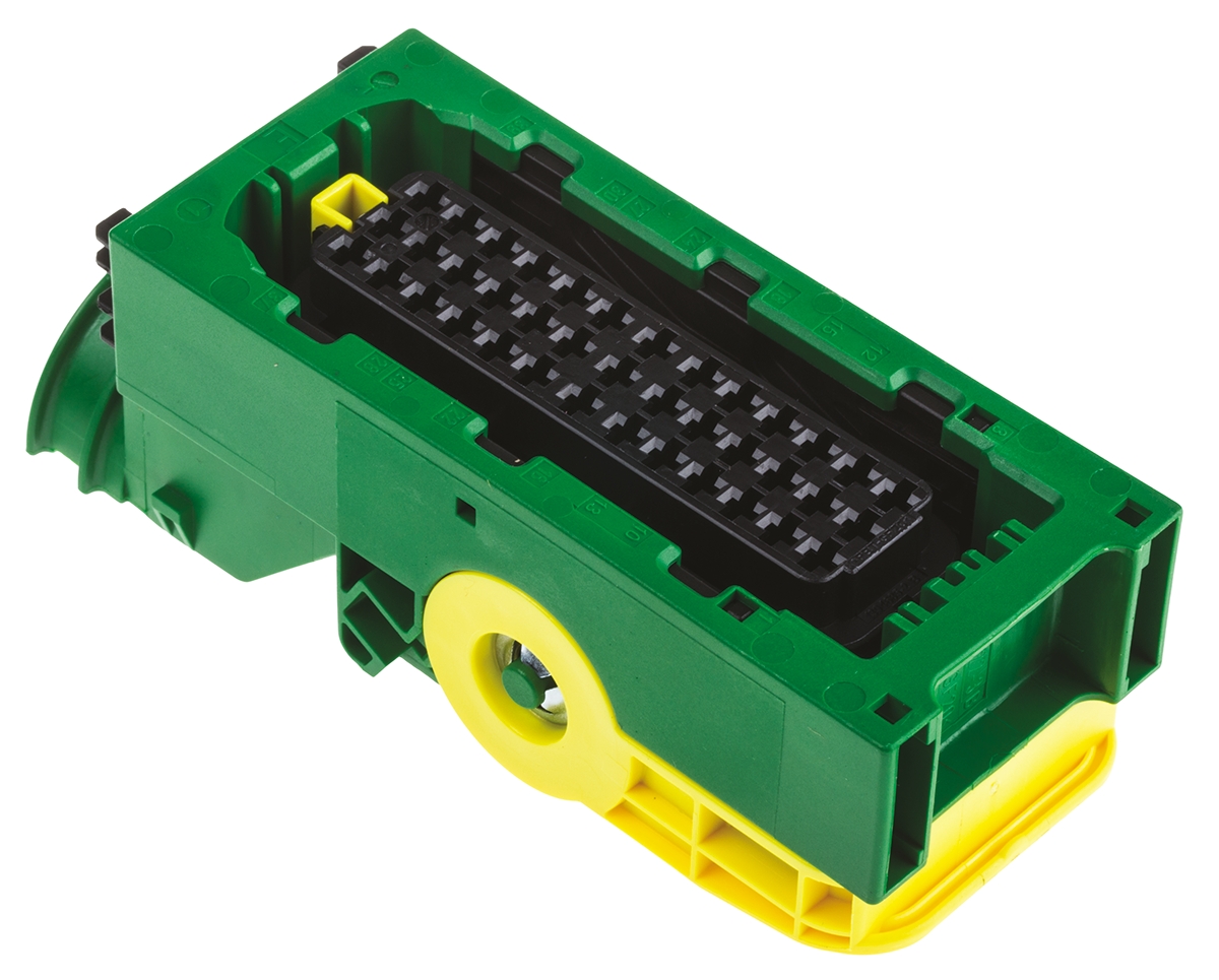 This is AMP MCP 2.8 Series 3 Row 39 Way Socket Housing manufactured by TE Connectivity. The manufacturer part number is 5-1718321-3. In addition, female is the available "Gender" of the product. It has a decent green colour. In addition, the height is 46mm. The product also features robust pbt housing material. Furthermore, the product is 120.5mm wide. The product comes in 44mm depth. It comes in 3 of rows. The product amp mcp 2.8, is a highly preferred choice for users. The product contains 39 contacts. It comes in automotive connector housing configuration.