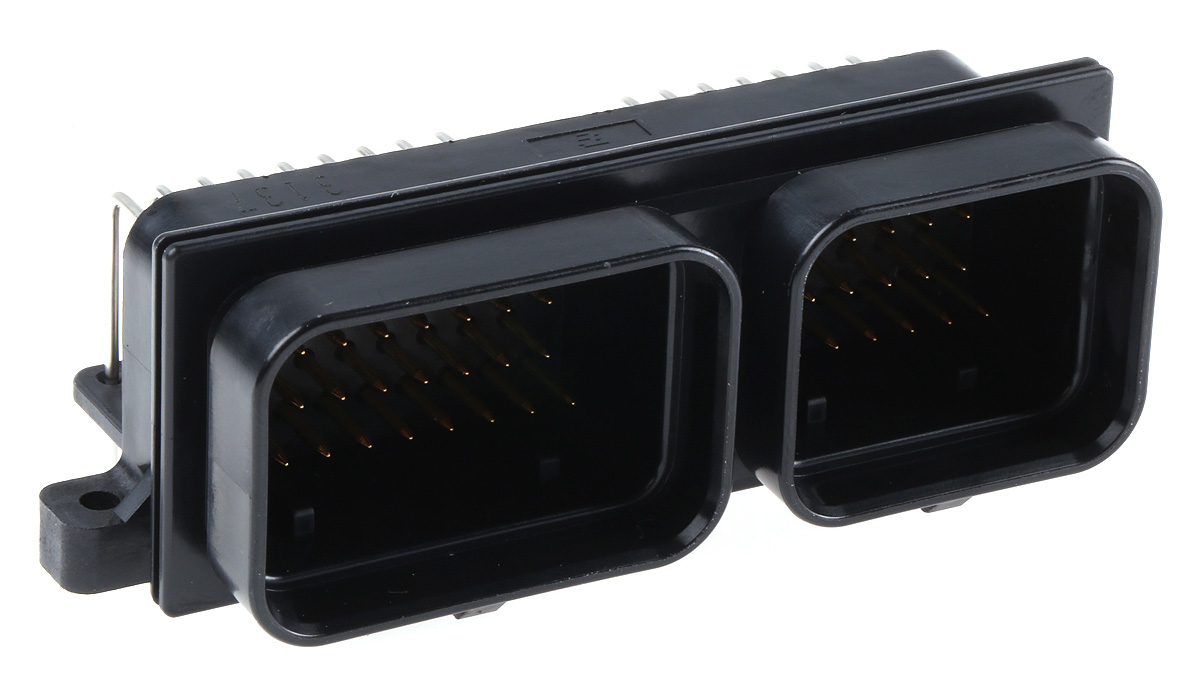 This is SUPER SEAL Series 4 Row 60 Way Through Hole Plug Header with Solder Termination Method manufactured by TE Connectivity. The manufacturer part number is 6437288-5. Whereas, the minimum operating temperature of the product is -40°c. The product is available in through hole configuration. In addition, male is the available "Gender" of the product. It allows solder termination method. In addition, the height is 27.9mm. The product also features robust pet housing material. Furthermore, the product is 45.5mm wide. The product comes in 36.5mm depth. It comes in 4 of rows. The high-quality gold over nickel is used as contact plating material. The product superseal, is a highly preferred choice for users. The product contains 60 contacts. It comes in header configuration. It has a maximum operating temperature of +125°c. The product is made from sturdy brass materials.