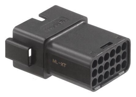 This is ML-XT Series 93444 Series Number 3 Row 18 Way Cable Mount Socket Crimp Housing with Crimp Termination Method manufactured by Molex. The manufacturer part number is 93444-7111. The product has a current rating of 13a. The product is available in cable mount configuration. In addition, female is the available "Gender" of the product. It has a decent black colour. It allows crimp termination method. In addition, the height is 22.63mm. The product also features robust nylon housing material. Furthermore, the product is 40.85mm wide. The product comes in 47.09mm depth. It comes in 3 of rows. Whereas, the minimum operating temperature of the product is -55°c. The product ml-xt, is a highly preferred choice for users. The product contains 18 contacts. It comes in crimp housing configuration. It has a maximum operating temperature of +125°c. It carries [Serial Number] serial number.