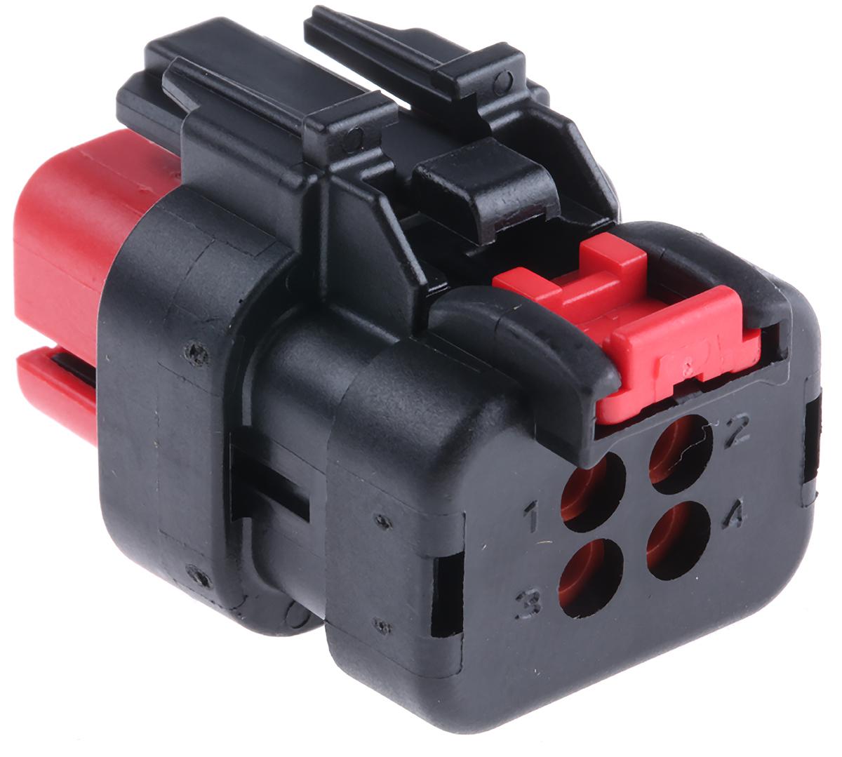 This is AMPSEAL 16 Series 2 Row 4 Way Cable Mount Socket Housing manufactured by TE Connectivity. The manufacturer part number is 776524-1. The product is available in cable mount configuration. In addition, female is the available "Gender" of the product. It has a decent red colour. In addition, the height is 26.8mm. The product also features robust glass fibre reinforced pbt housing material. Furthermore, the product is 25.33mm wide. The product comes in 39.95mm depth. It comes in 2 of rows. The product ampseal 16, is a highly preferred choice for users. The product contains 4 contacts. It comes in automotive connector housing configuration.
