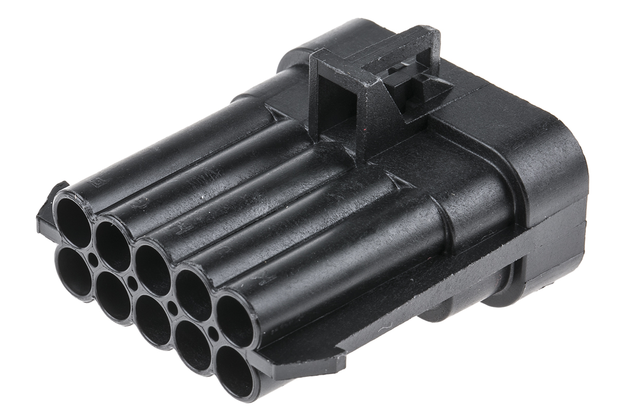 This is Metri-Pack 150 Series 2 Row 10 Way Cable Mount Plug Connector with Crimp Termination Method manufactured by Delphi. The manufacturer part number is 12045808. The product has a current rating of 14a. The product is available in cable mount configuration. In addition, male is the available "Gender" of the product. It has a decent black colour. It allows crimp termination method. In addition, the height is 27mm. The product also features robust pbt housing material. Furthermore, the product is 42.2mm wide. The product comes in 44.6mm depth. It comes in 2 of rows. Whereas, the minimum operating temperature of the product is -40°c. The product metri-pack 150, is a highly preferred choice for users. The product contains 10 contacts. It comes in automotive connector configuration. It has a maximum operating temperature of +125°c.