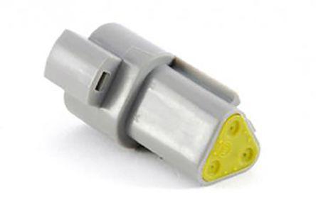 This is AT Series 04 Series Number 2 Row 3 Way IP67 Cable Mount Socket Automotive Connector manufactured by Amphenol. The manufacturer part number is AT04-3P-RD01. The product has a current rating of 13a. The product is available in cable mount configuration. It is IP rated with ip67. In addition, female is the available "Gender" of the product. It has a decent grey colour. It allows crimp termination method. In addition, the height is 24.4mm. The product also features robust thermoplastic housing material. Furthermore, the product is 21mm wide. The product comes in 43.2mm depth. It comes in 2 of rows. Whereas, the minimum operating temperature of the product is -55°c. The product at, is a highly preferred choice for users. In addition, it is corded yes . The product contains 3 contacts. It comes in automotive connector configuration. It has a maximum operating temperature of +125°c. It carries [Serial Number] serial number.