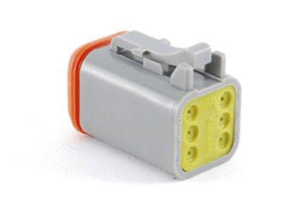 This is AT Series 06 Series Number 2 Row 6 Way IP67 Cable Mount Plug Automotive Connector manufactured by Amphenol. The manufacturer part number is AT06-6S-RD01. The product has a current rating of 13a. The product is available in cable mount configuration. It is IP rated with ip67. In addition, male is the available "Gender" of the product. It has a decent grey colour. It allows crimp termination method. In addition, the height is 24.9mm. The product also features robust thermoplastic housing material. Furthermore, the product is 18.2mm wide. The product comes in 31.4mm depth. It comes in 2 of rows. Whereas, the minimum operating temperature of the product is -55°c. The product at, is a highly preferred choice for users. In addition, it is corded yes . The product contains 6 contacts. It comes in automotive connector configuration. It has a maximum operating temperature of +125°c. It carries [Serial Number] serial number.
