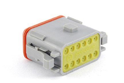 This is AT Series 06 Series Number 2 Row 12 Way IP67 Cable Mount Plug Automotive Connector manufactured by Amphenol. The manufacturer part number is AT06-12SA-RD01. The product has a current rating of 13a. The product is available in cable mount configuration. It is IP rated with ip67. In addition, male is the available "Gender" of the product. It has a decent grey colour. It allows crimp termination method. In addition, the height is 18.3mm. The product also features robust thermoplastic housing material. Furthermore, the product is 45.6mm wide. The product comes in 31.3mm depth. It comes in 2 of rows. Whereas, the minimum operating temperature of the product is -55°c. The product at, is a highly preferred choice for users. In addition, it is corded yes . The product contains 12 contacts. It comes in automotive connector configuration. It has a maximum operating temperature of +125°c. It carries [Serial Number] serial number.