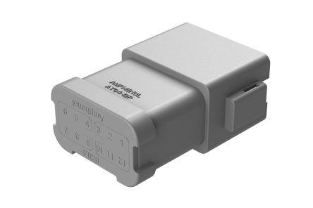 This is AT Series AT04 Series Number 2 Row 12 Way IP67 Plug Connector manufactured by Amphenol. The manufacturer part number is AT04-12PA-P026. The product contains 12 contacts. The product has a current rating of 39a. Whereas, the minimum operating temperature of the product is -55°c. It is IP rated with ip67. In addition, male is the available "Gender" of the product. It has a decent grey colour. In addition, the height is 22.2mm. The product also features robust thermoplastic housing material. Furthermore, the product is 40.5mm wide. The product comes in 52.4mm depth. It comes in 2 of rows. The high-quality nickel plated is used as contact plating material. The product at, is a highly preferred choice for users. The product is made from sturdy copper alloy materials. It comes in automotive connector configuration. It has a maximum operating temperature of +125°c. It carries [Serial Number] serial number.