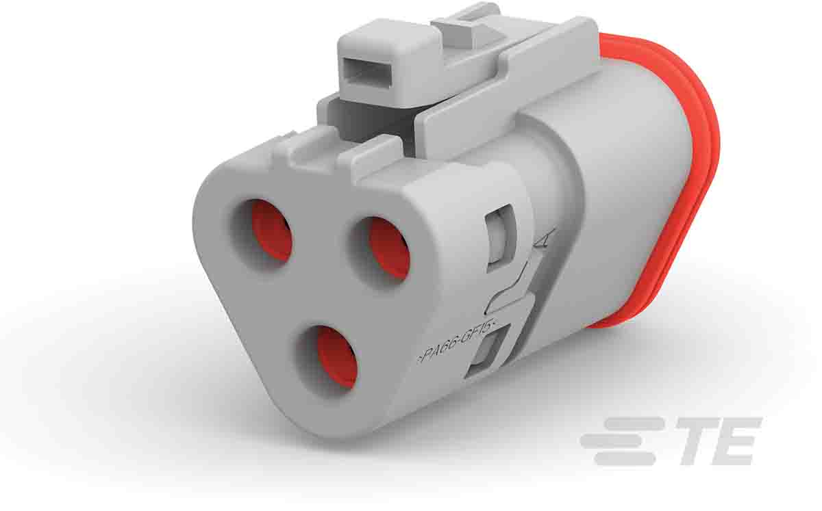 This is DEUTSCH DT 12303816 2 Row 3 Way IP68 Plug Housing manufactured by Deutsch. The manufacturer part number is DT06-3S-TN31 / 1-2303816-2. The product has a current rating of 13a. It is IP rated with ip68. In addition, male is the available "Gender" of the product. It has a decent grey colour. In addition, the height is 23.89mm. The product also features robust pa gf housing material. Furthermore, the product is 31.2mm wide. The product comes in 20.17mm depth. It comes in 2 of rows. Whereas, the minimum operating temperature of the product is -55°c. The product deutsch dt, is a highly preferred choice for users. The product contains 3 contacts. It comes in automotive connector housing configuration. It has a maximum operating temperature of +125°c. It carries [Serial Number] serial number.