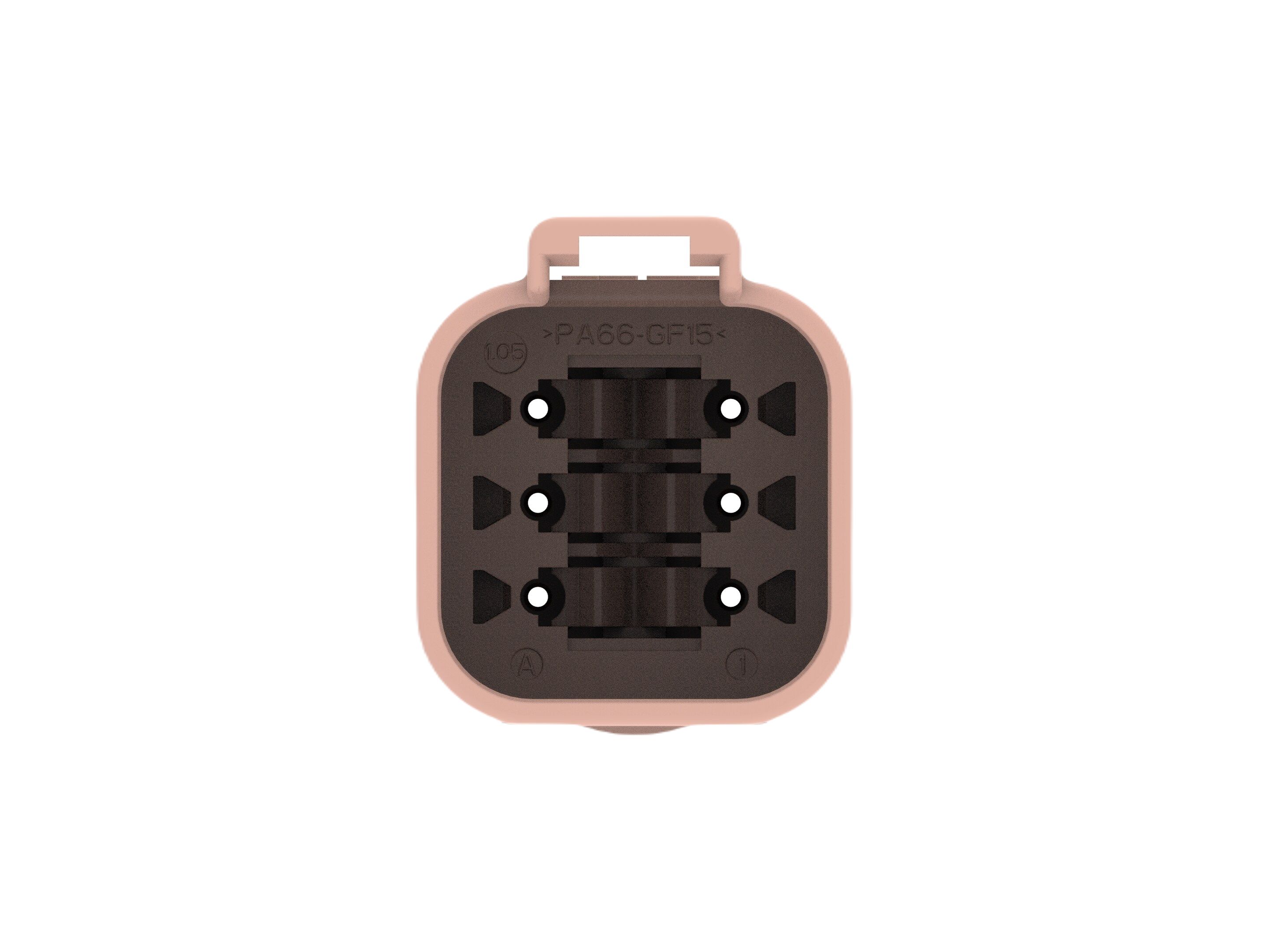 This is DT04-6P Automotive Connector Plug Brown Cable 6 Way Cable Termination manufactured by TE Connectivity. The manufacturer part number is DT04-6P-TN09. The product has a current rating of 13a. The product is available in cable configuration. In addition, male is the available "Gender" of the product. It has a decent brown colour. It allows cable termination method. In addition, the height is 24.16mm. The product also features robust pa gf housing material. Furthermore, the product is 20.83mm wide. The product comes in 45.92mm depth. It comes in 2 of rows. Whereas, the minimum operating temperature of the product is -55°c. The product dt04-6p, is a highly preferred choice for users. In addition, it is corded no . The product contains 6 contacts. It comes in 6 way plug configuration. It has a maximum operating temperature of +125°c. It carries [Serial Number] serial number.