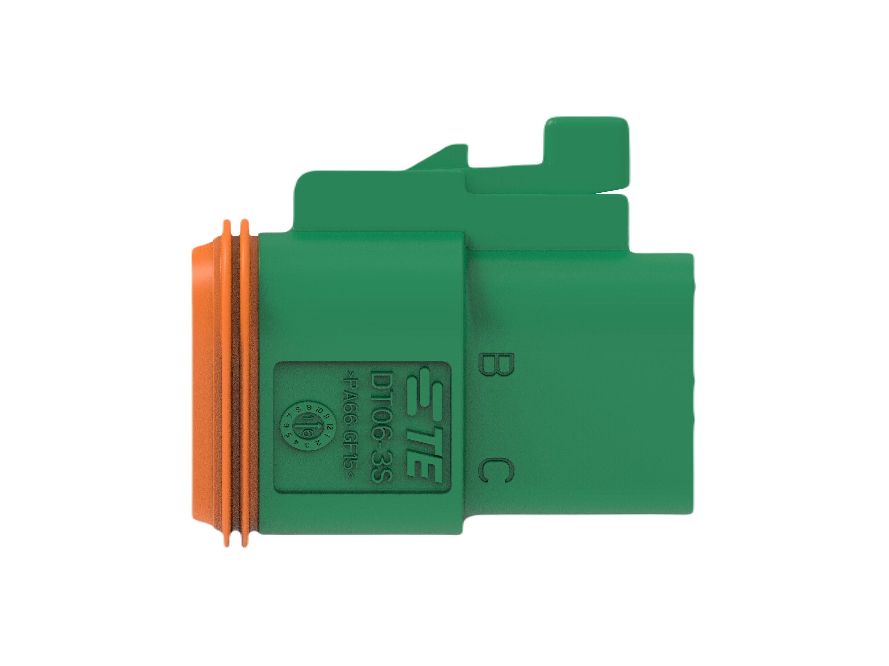 This is DT06-3S Automotive Connector Socket Green Cable 3 Way Cable Termination manufactured by TE Connectivity. The manufacturer part number is DT06-3S-TN03. The product has a current rating of 13a. The product is available in cable configuration. In addition, female is the available "Gender" of the product. It has a decent green colour. It allows cable termination method. In addition, the height is 23.73mm. The product also features robust pa gf housing material. Furthermore, the product is 183.7mm wide. The product comes in 284mm depth. It comes in 2 of rows. Whereas, the minimum operating temperature of the product is -55°c. The product dt06-3s, is a highly preferred choice for users. In addition, it is corded no . The product contains 3 contacts. It comes in 3 way plug configuration. It has a maximum operating temperature of +125°c. It carries [Serial Number] serial number.