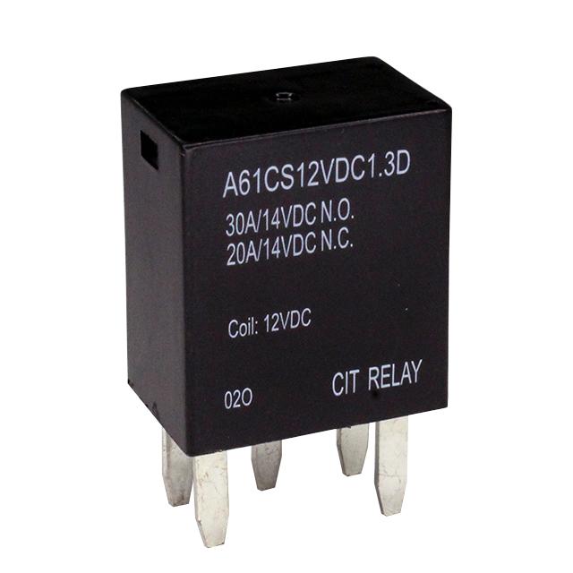 This is manufactured by CIT Relay and Switch. The manufacturer part number is A61CS12VDC1.3D. It is assigned with possible HTSUS value of 8536.41.0050. The product is rohs compliant. The coil voltage of the product is 12vdc. Moreover, it has pc pin terminal style. The product has -40°c ~ 85°c operating temperature range. It holds up to 109 ohms coil resistance. It has a coil current of 110.1 ma. The coil is a non latching type. Robust coil power of 1.3w. In addition, it is reach unaffected. On the other hand, 8.4 vdc is the given crucial/must operating voltage. The cit relay and switch's product offers user-desired applications. It also has a spdt (1 form c) contact form. Its typical moisture sensitivity level is 1 (unlimited). The operating time of the product is 5 ms. While the must release voltage is a 1.2 vdc. It has a long 14 weeks standard lead time. It has a contact current rating of 30 a. The splendid features of the product include diode, sealed - fully. The product is available in through hole configuration. The product a6, is a highly preferred choice for users. The product's switching voltage is 75vdc - max. While 2 ms is its release time. In addition, tray is the available packaging type of the product. The product is designated with the ear99 code number. Moreover, it corresponds to a61cs, a base product number of the product. The product is made from sturdy silver tin oxide (agsno) materials.