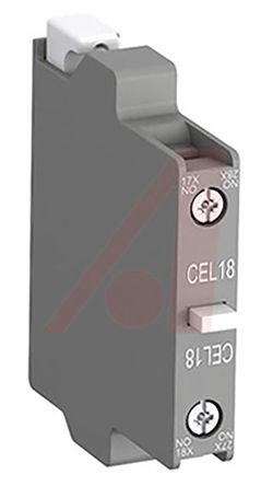 This is Side Mount Auxiliary Contact with Screw Terminal NC 100 mA 125 V ac manufactured by ABB. The manufacturer part number is CEL18-01. The product contains 1 contacts. The rated contact current is 100 ma. It has spst pole and throw configuration. The product is available in side mount style. The normal state configuration includes nc. The integrated contact has 125 v ac of voltage rating. The terminal is a screw type.