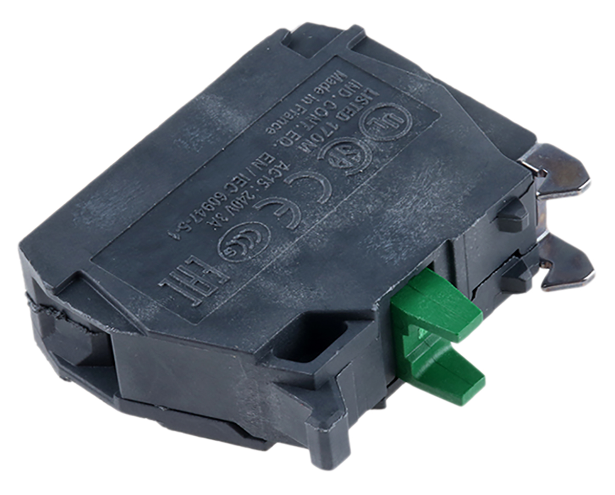 This is Auxiliary Contact Block NO 2.8 A dc 3 A ac 400 V ac 48 V dc manufactured by Socomec. The manufacturer part number is 39990701. The rated contact current is 2.8 a dc, 3 a ac. The product contains 1 contacts. The integrated contact has 400 v ac, 48 v dc of voltage rating. The normal state configuration includes 1no. It has sp pole and throw configuration.