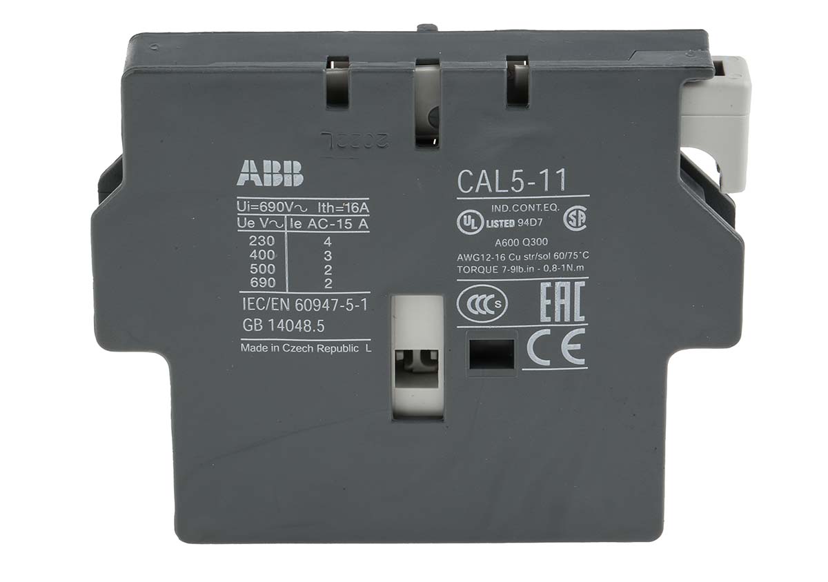 Auxiliary Contact Blocks for Contactor Series A9 to A110 Front or side vertical mounting Note ONLY SUITABLE FOR USE WITH 'A' SERIES CONTACTORS