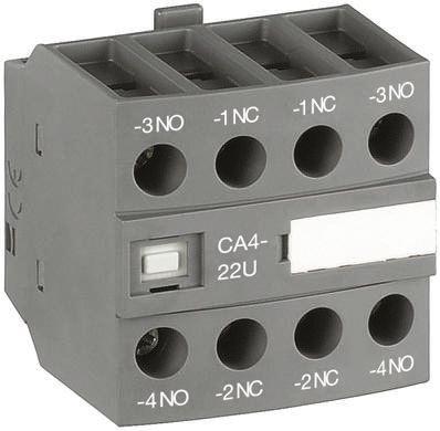 This is Front Mount Auxiliary Contact with Screw Terminal 2NO/2NC 6 A 600 V dc 690 V ac manufactured by ABB. The manufacturer part number is CA4-22U. The integrated contact has 600 v dc, 690 v ac of voltage rating. The rated contact current is 6 a. The product ca4, is a highly preferred choice for users. It has 4p pole and throw configuration. The product is available in front mount style. The normal state configuration includes 2no/2nc. The product contains 4 contacts. The terminal is a screw type.