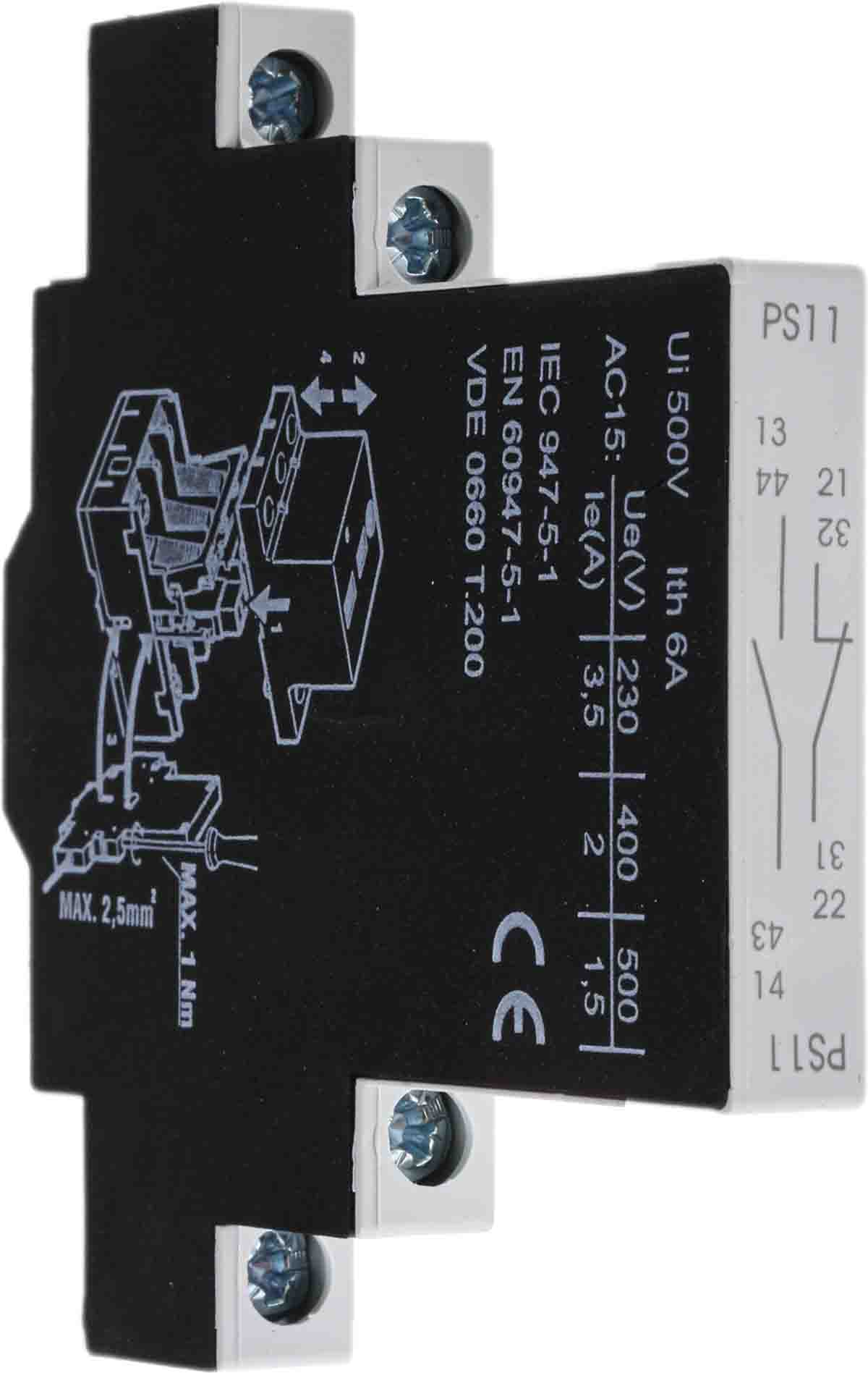 This is DIN Rail Mount Auxiliary Contact NO/NC 240 V ac manufactured by RS Pro. The manufacturer part number is 331-3696. The integrated contact has 240 v ac of voltage rating. It has dp pole and throw configuration. The product is available in din rail mount style. The normal state configuration includes 1nc + 1no. The product contains 2 contacts.