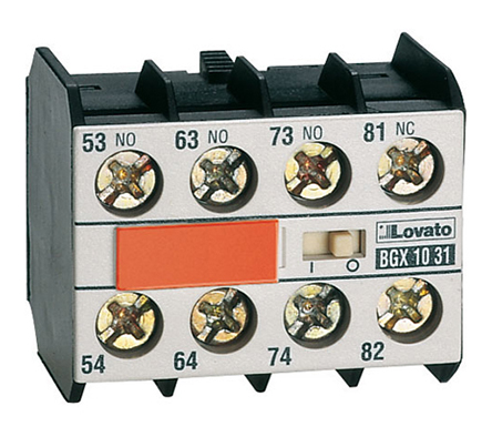 This is DIN Rail Mount Auxiliary Contact with Screw Terminal 3NO/NC 10 A 690 V manufactured by Lovato. The manufacturer part number is 11BGX1031. The integrated contact has 690 v of voltage rating. The rated contact current is 10 a. The product bg, is a highly preferred choice for users. It has 4pst pole and throw configuration. The product is available in din rail mount style. The normal state configuration includes 1nc + 3no. The product contains 4 contacts. The terminal is a screw type.