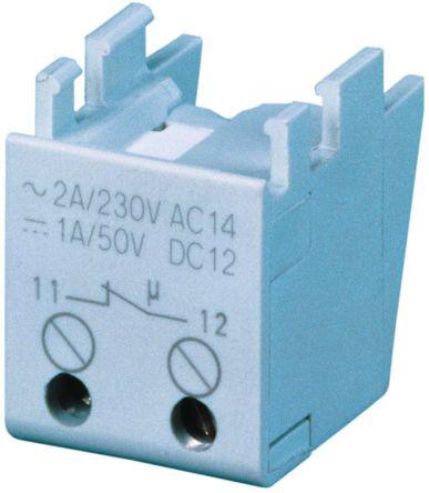 This is Auxiliary Contact NC 2 A 230 V ac 50 V dc manufactured by ABB. The manufacturer part number is 2CDS200970R0001. The integrated contact has 50 v dc, 230 v ac of voltage rating. The rated contact current is 2 a. It has sp pole and throw configuration. The normal state configuration includes nc. The product contains 1 contacts.