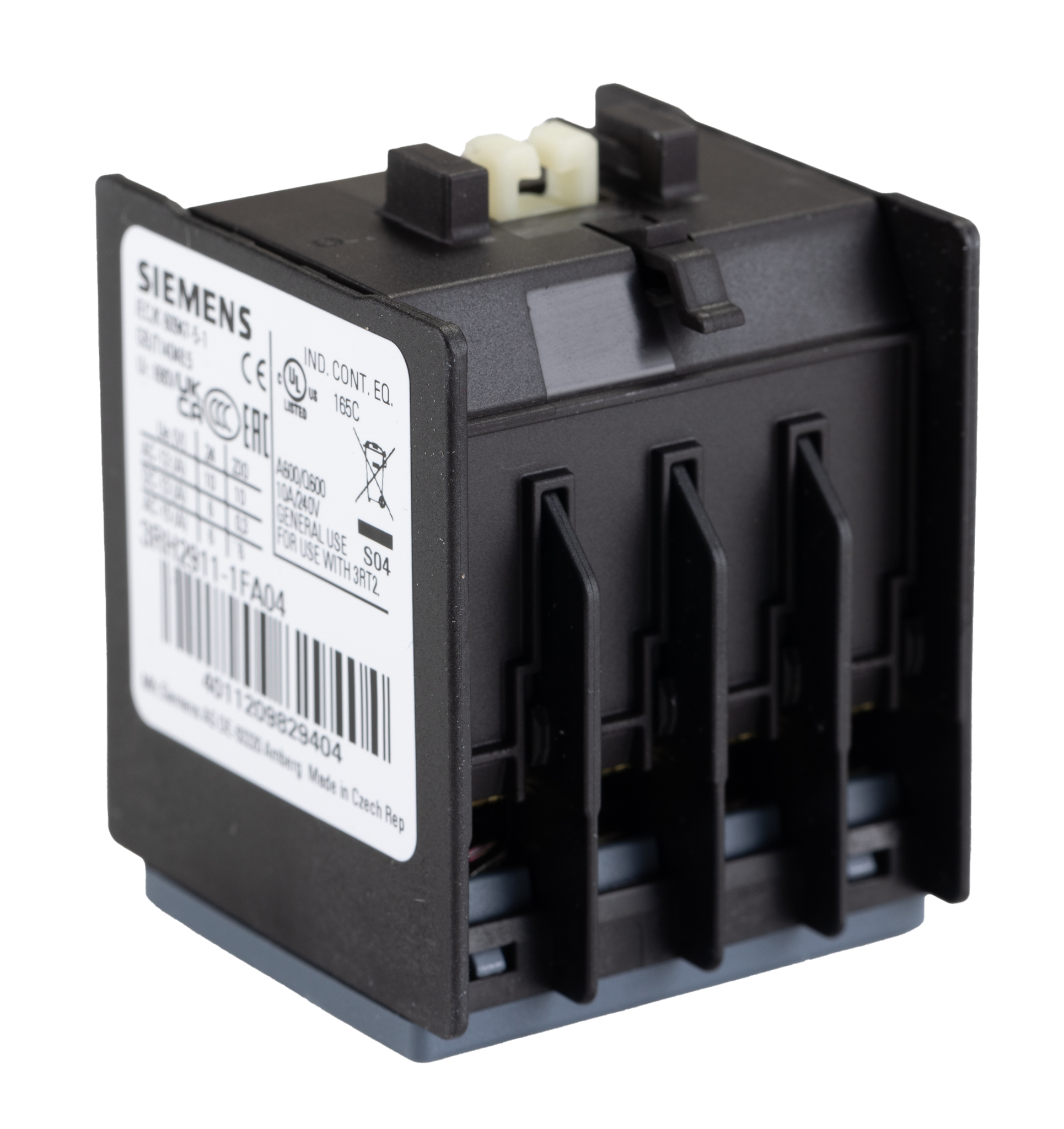 The Siemens 3RH2911‑1FA04 delivers a high‑quality solution for extending the functionality of Siemens 3RT2 contactors in UK industrial environments. This front‑mounted, snap‑on module features four normally‑closed (4 NC) contacts with screw‑terminals, capable of handling up to 10 A AC or 6 A DC at voltages up to 690 V AC. Designed to IEC 60947‑5‑1 standards, it operates reliably across temperatures from –25 °C to +60 °C. Simply installed onto S00, S0 or S2 size Sirius contactors, it offers consistent signalling for interlock circuits, status feedback or safety systems.
