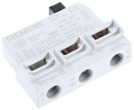 This is Front Mount Auxiliary Contact with Screw Terminal NO/NC 2 A 24 V ac manufactured by Siemens. The manufacturer part number is 3RV1901-1D. The integrated contact has 24 v ac of voltage rating. The product has maximum of +60 °c of operating temperature range. The rated contact current is 2 a. The product 3rv1, is a highly preferred choice for users. It has spdt pole and throw configuration. The product is available in front mount style. It features sirius classic range. The normal state configuration includes no/nc. The product contains 1 contacts. It has a maximum operating temperature of +60°c. The terminal is a screw type.