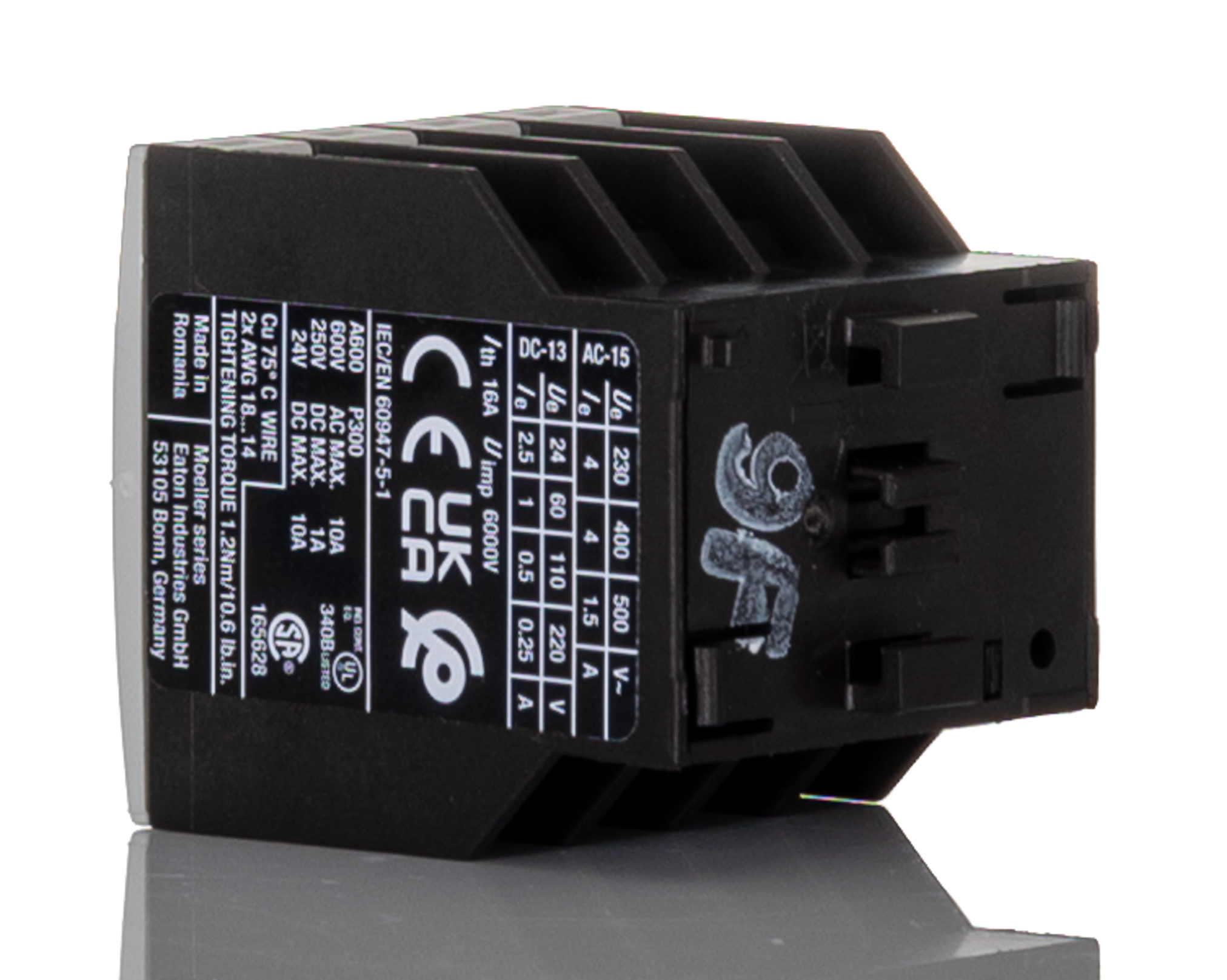 This is DILA DILM7 - DILM38 Auxiliary Contact - 4 NC 4 Contact Front Fixing 16 A manufactured by Eaton. The manufacturer part number is 276424 DILA-XHI04. The integrated contact has 500 v of voltage rating. Whereas, the minimum operating temperature of the product is -25°c. The product has -25 → +60 °c of operating temperature range. The rated contact current is 16 a. The product eaton moeller, is a highly preferred choice for users. It has 4p pole and throw configuration. The product is available in front fixing style. It features dila, dilm7 - dilm38 range. The normal state configuration includes 4 nc. The product contains 4 contacts. It has a maximum operating temperature of +60°c. The terminal is a screw terminals type.
